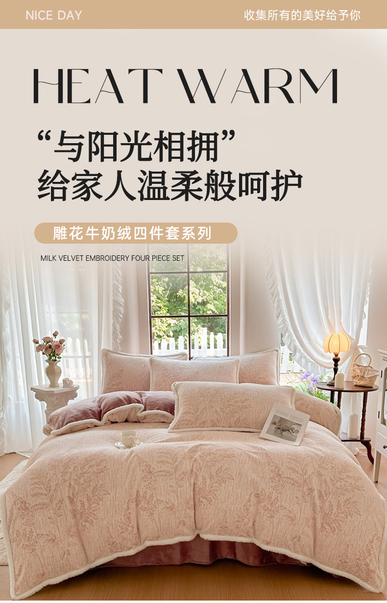 (总)亿品家纺 2025新款八斤立体雕花牛奶绒四件套,北欧经典【绿】,繁花【灰】,好梦秋天【粉】,花季【浅咖】,画意枝头【芥末绿】,乐枝【米灰】,暮云春叶【绿】,叶中花【卡其】,云思梦想【蓝】,长夏叶蔓【桔】,仲夏【卡其】