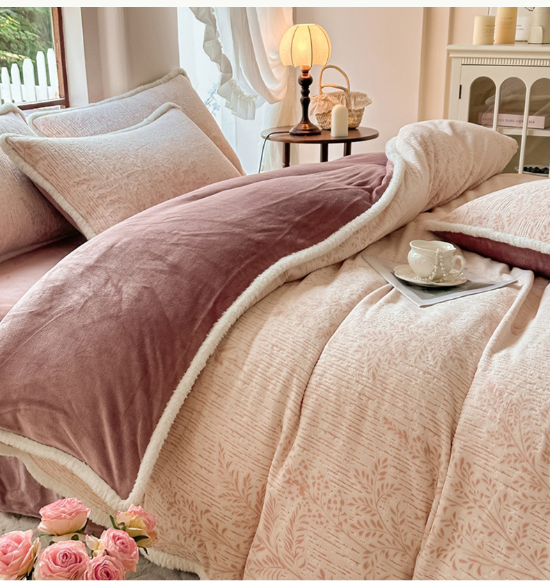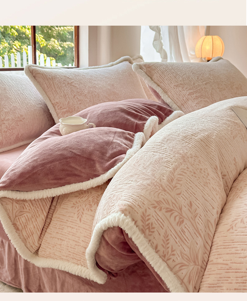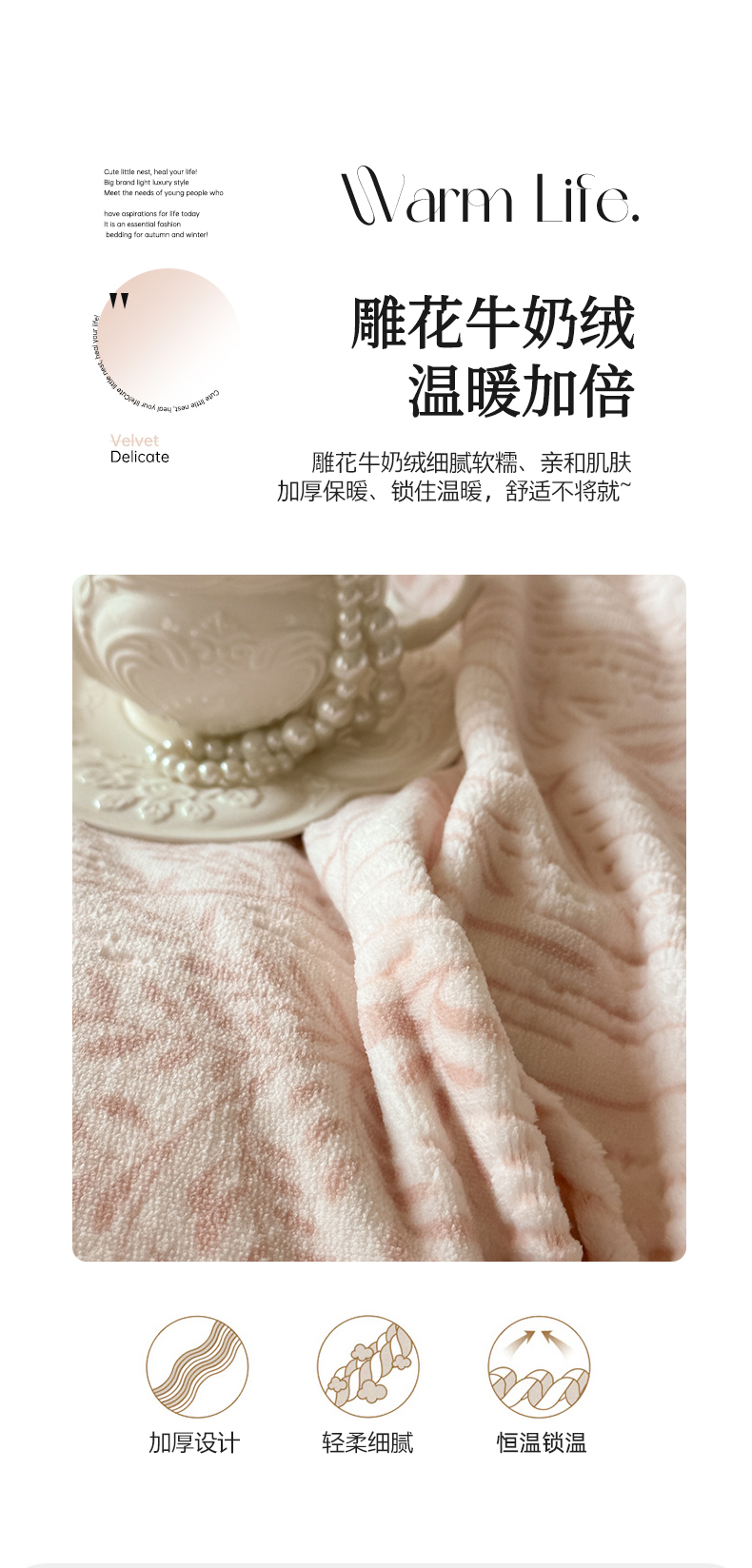 亿品家纺 2025新款八斤立体雕花牛奶绒四件套 长夏叶蔓【桔】