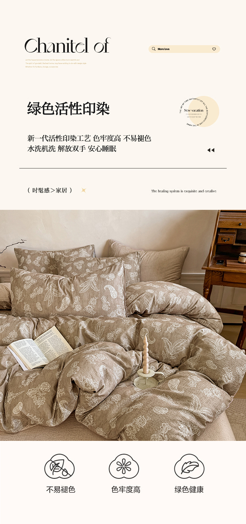 商品名称:壹号库家纺 2025年新品A类仿麻中古风皱皱纱双层纱四件套 莫里斯
