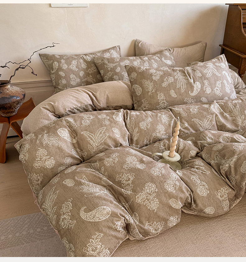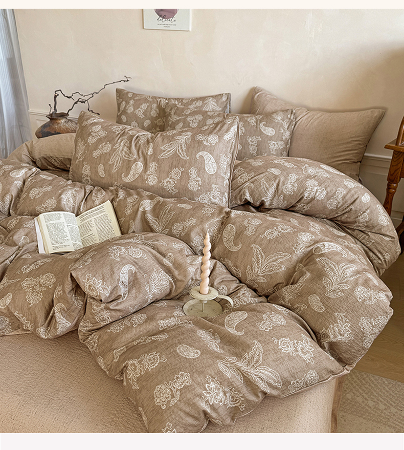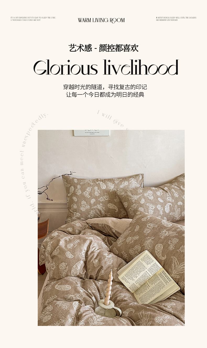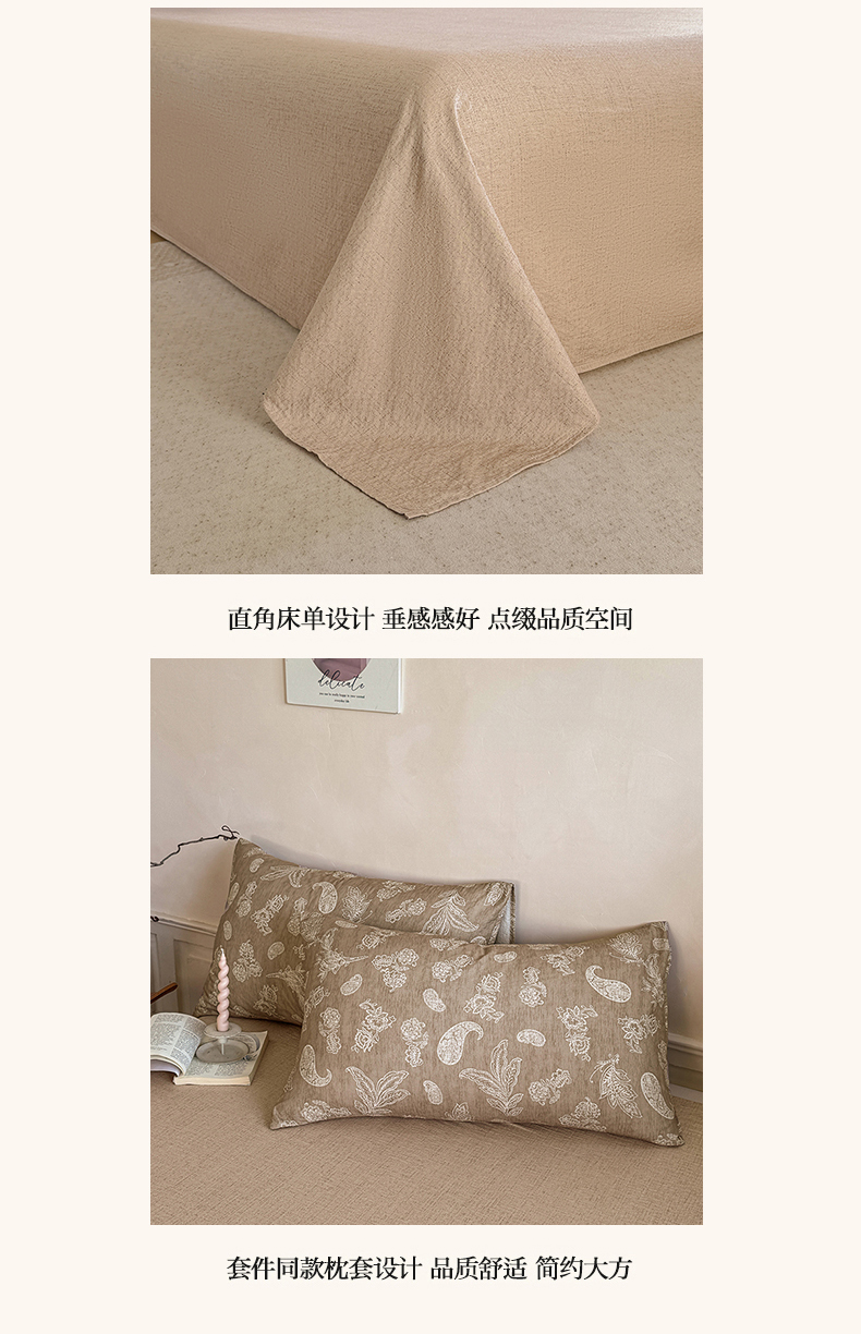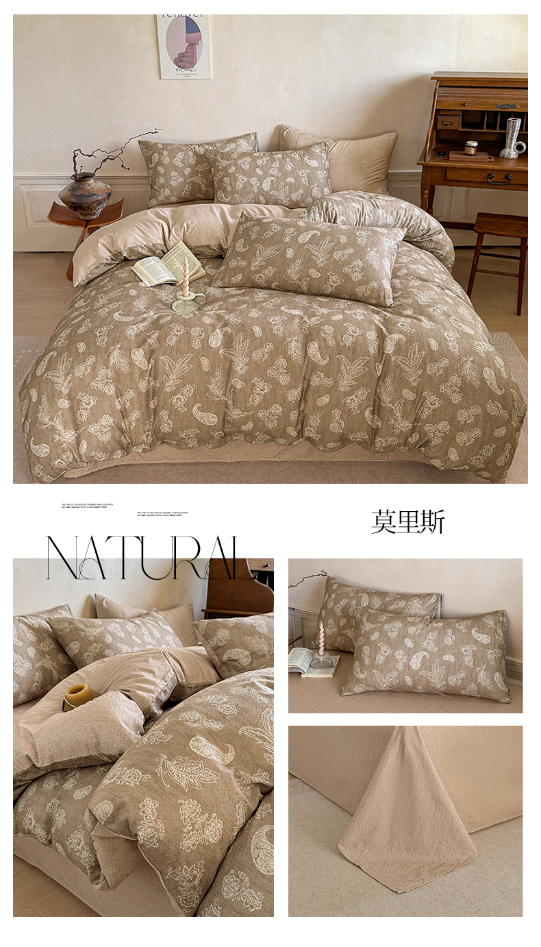 壹号库家纺 2025年新品A类仿麻中古风皱皱纱双层纱四件套 莫里斯