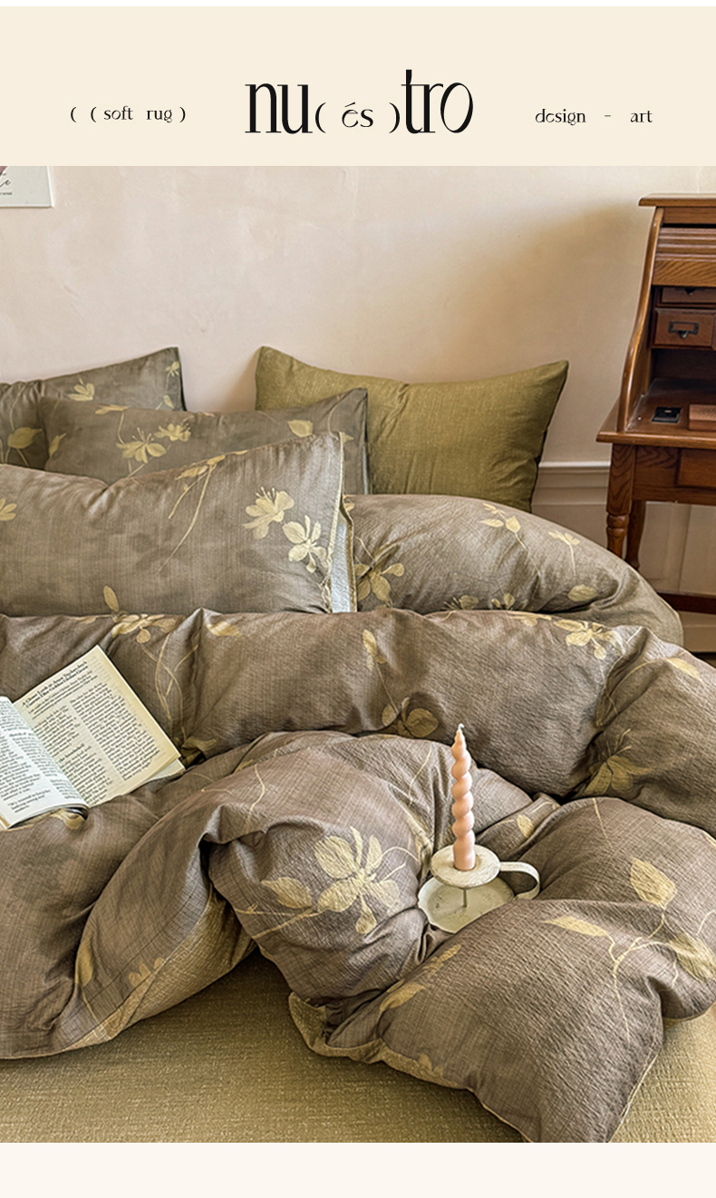 (总)壹号库家纺 2025年新品A类仿麻中古风皱皱纱双层纱四件套,芳草集,芳华,兰亭序,莫里斯,南枝,青花瓷,塞纳河畔,西西里,喜寐,香奈紫,雅韵,一路生花,远山青黛,紫烟