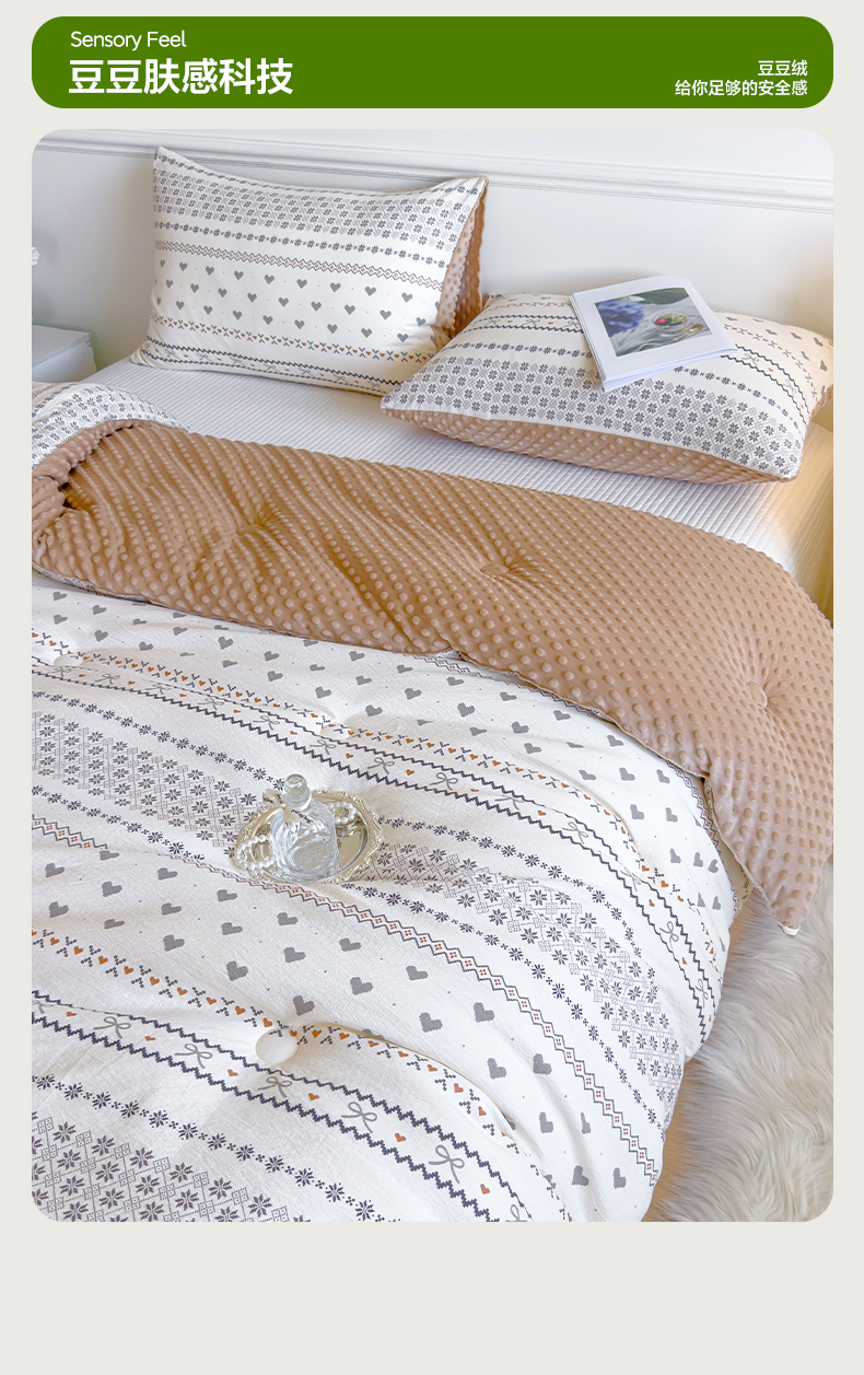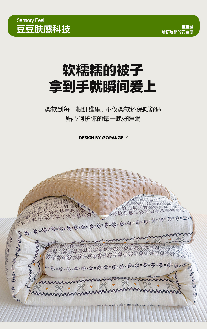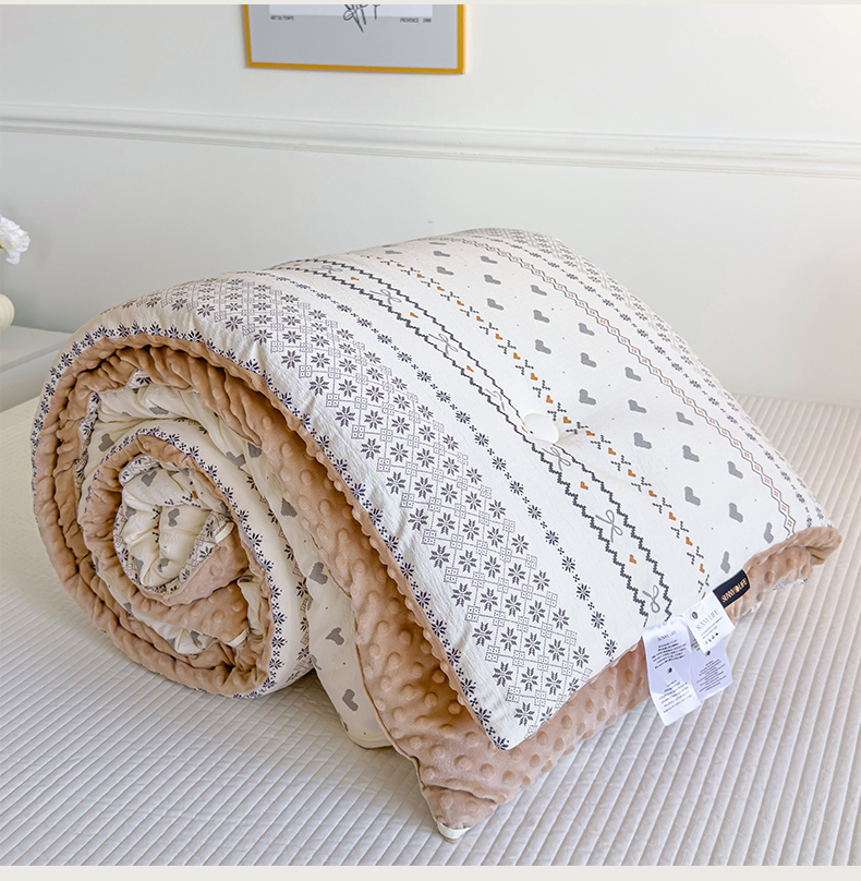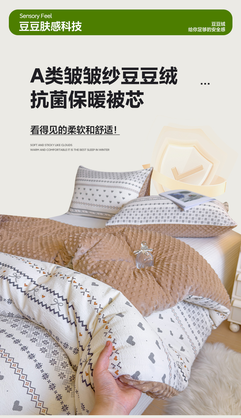 商品名称:玛德琳 2025新款A类皱皱纱豆豆绒抗菌保暖被子被芯 倾心