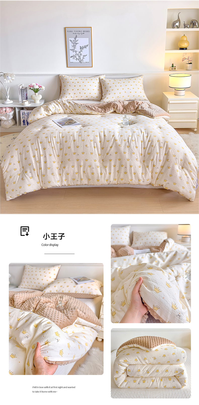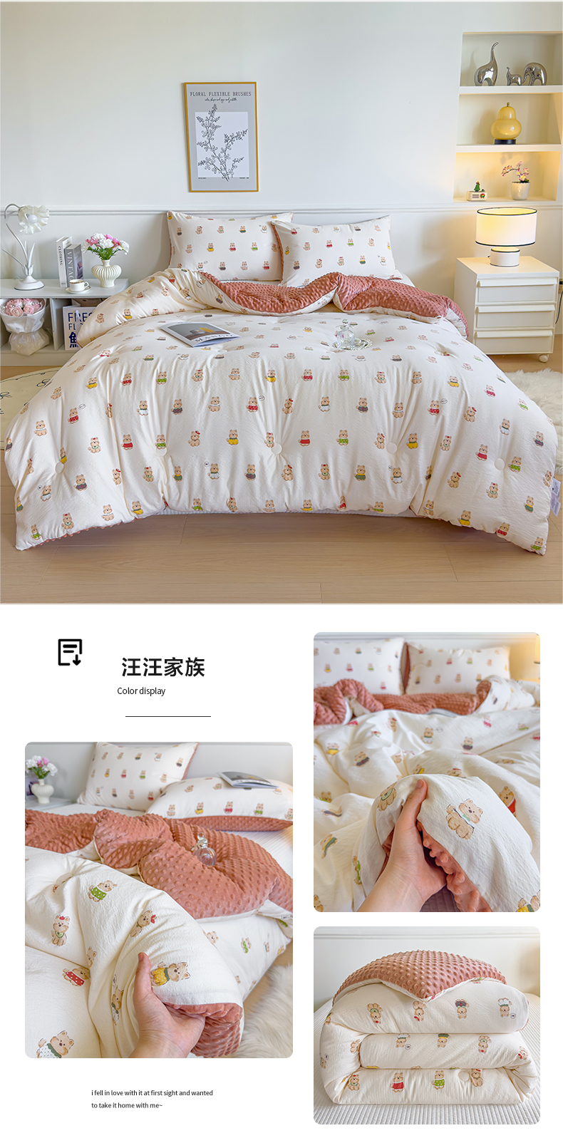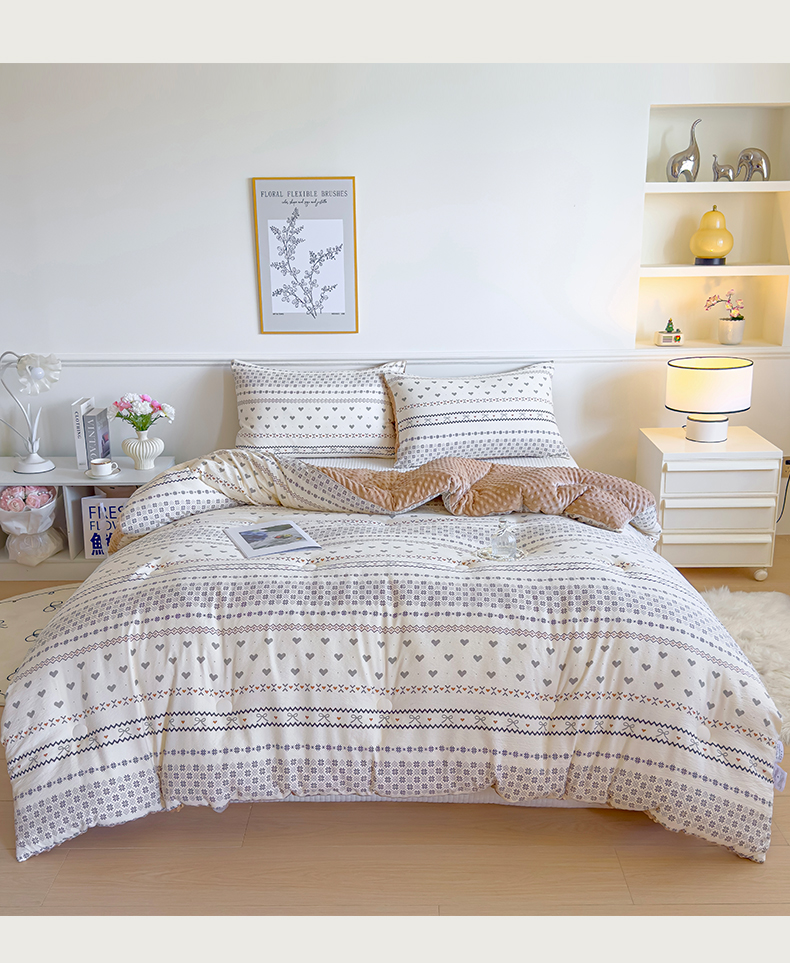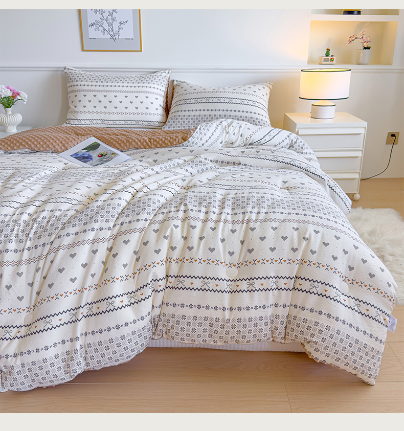 商品名称:玛德琳 2025新款A类皱皱纱豆豆绒抗菌保暖被子被芯 倾心