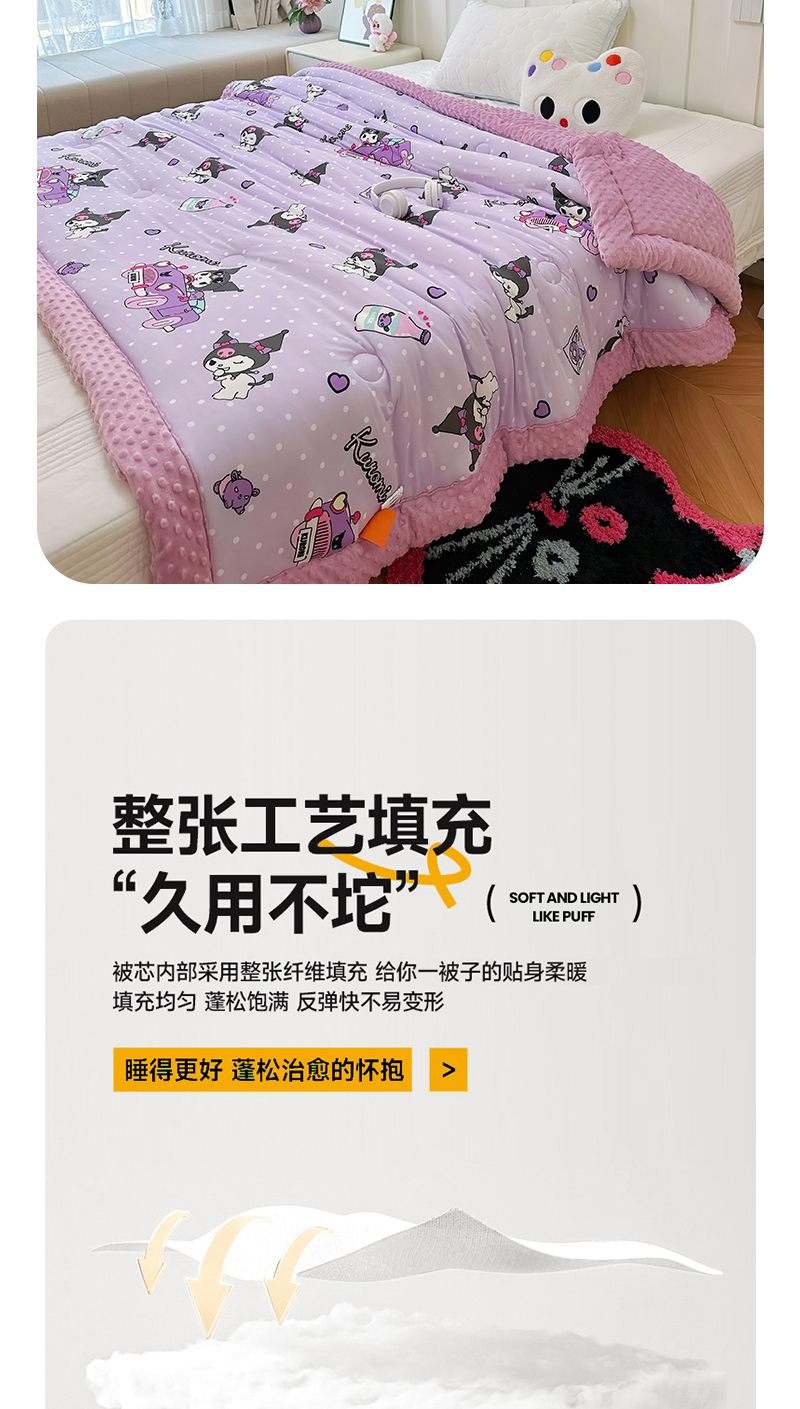 商品名称:兜米家居 2025新款三丽鸥针织豆豆绒被纯手工包边卡通立体豆豆绒保暖被子被芯 苹果库洛米