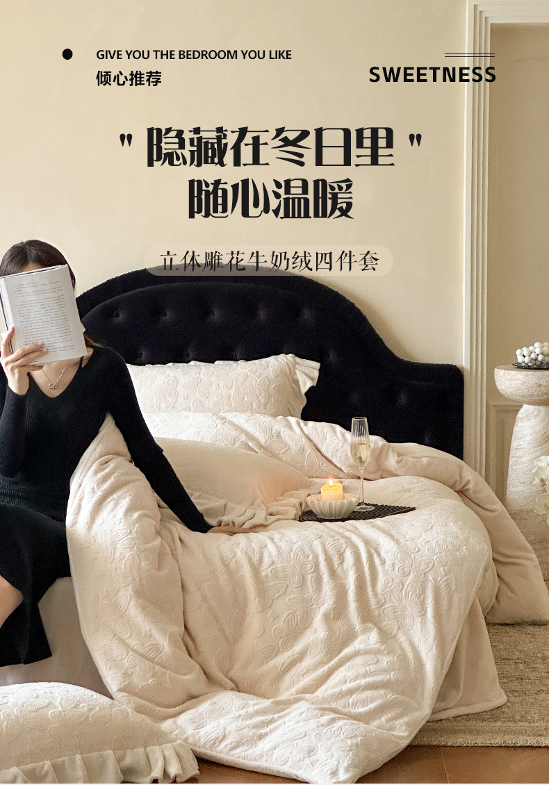 (总)云栖家居 2025秋冬新品立体消光印花雕花绒加厚高克重牛奶绒四件套星辰玫瑰,星辰玫瑰-粉,星辰玫瑰-绿