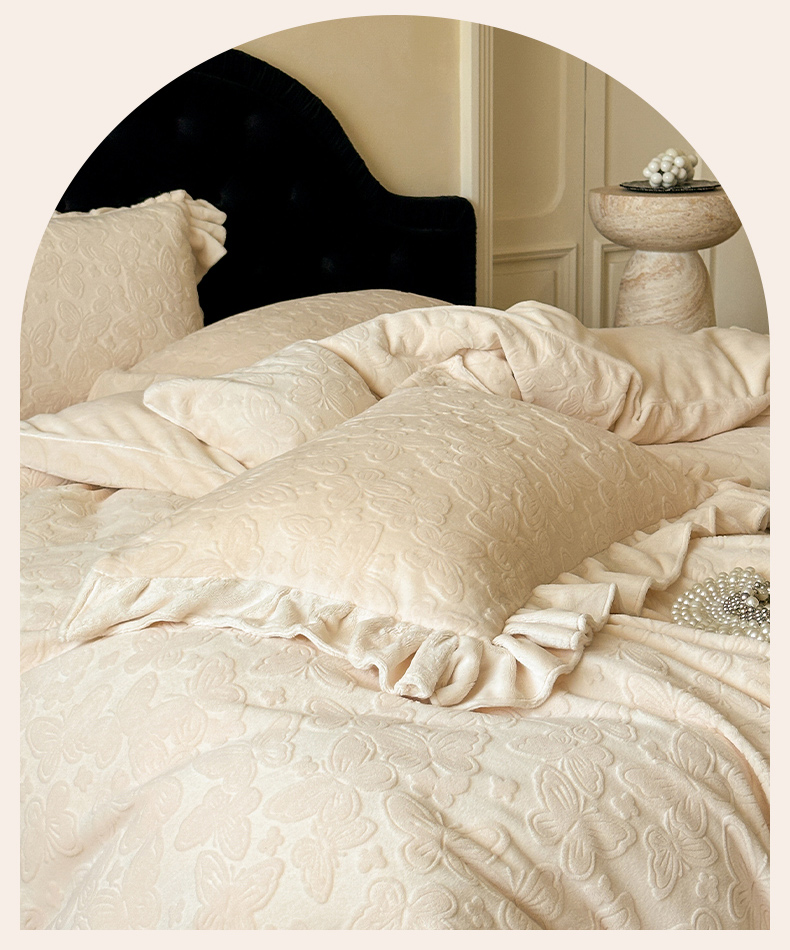 商品名称:云栖家居 2025消光加厚纯色立体雕花牛奶绒-又见小蝴蝶(售价劵后:不得低于199元) 又见小蝴蝶-香槟