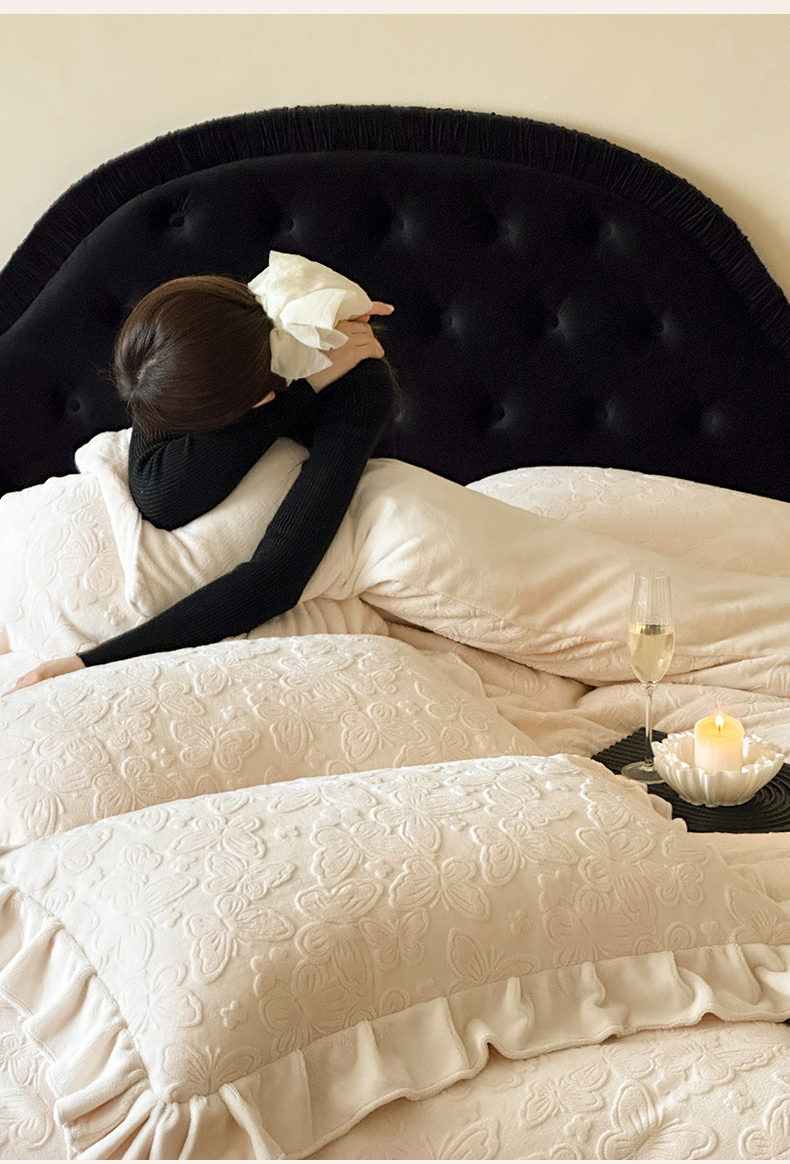(总)云栖家居 2025新款加厚立体防静电绣花牛奶绒刺绣四件套花影,花影