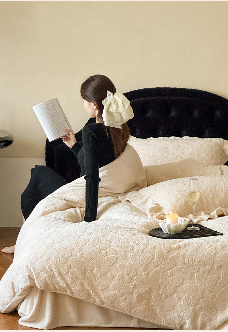 云栖家居 2025消光加厚纯色立体雕花牛奶绒-又见小蝴蝶(售价劵后:不得低于199元) 又见小蝴蝶-香槟