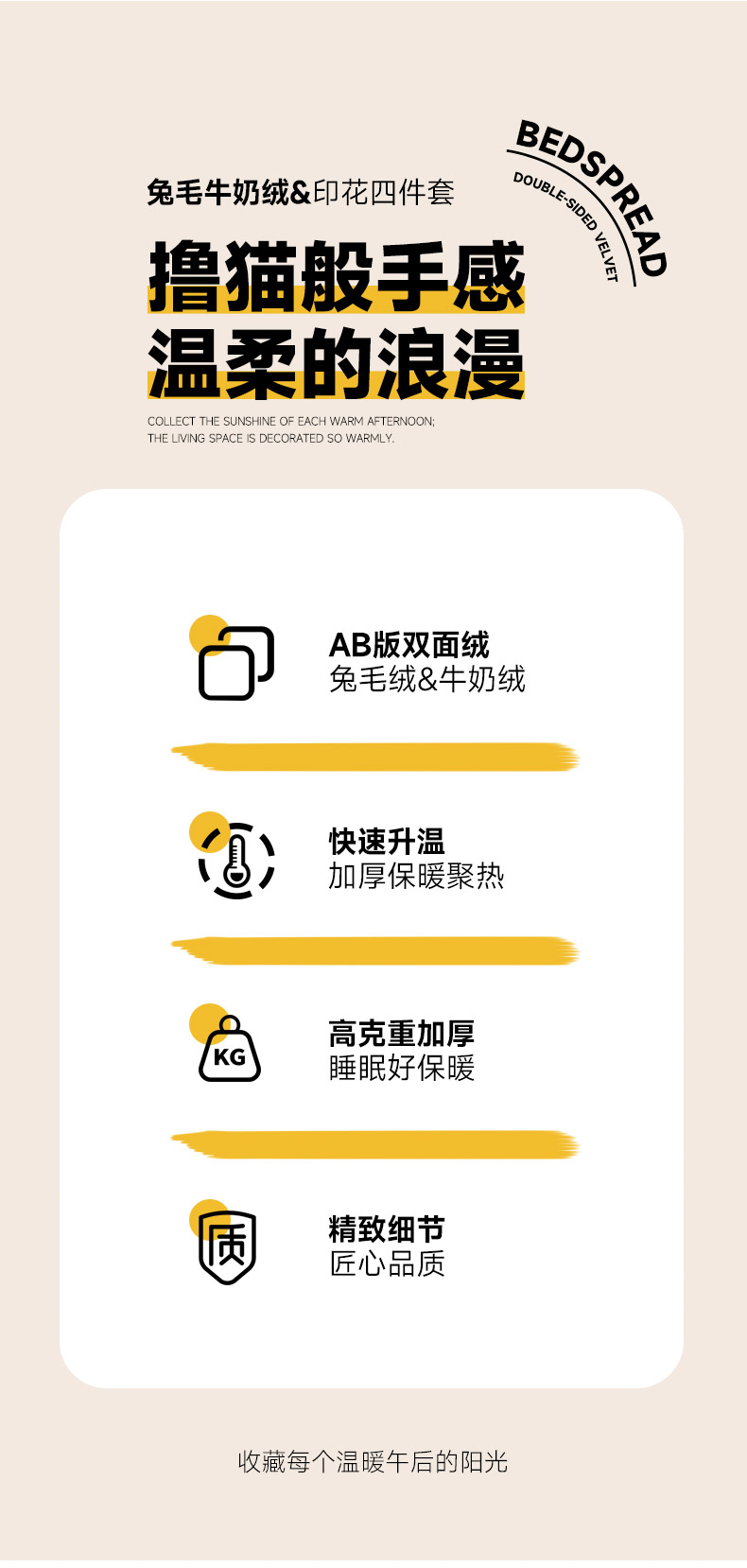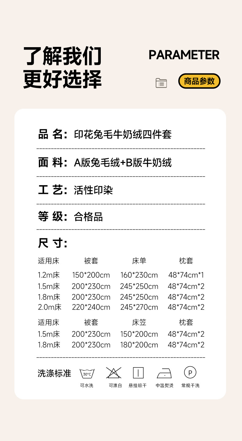 商品名称:库里梦家纺 2025网红直播热款10公分包边兔毛牛奶绒印花四件套-包边款 百合-卡其-包边款
