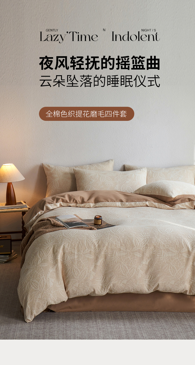 当前位置: 91家纺网 > 商品网购 > 床品套件 > 四件套 > 全棉普通四件套 > 千朵森 2025新款全棉纯棉色织提花磨毛四件套-秋思 秋思—简雅