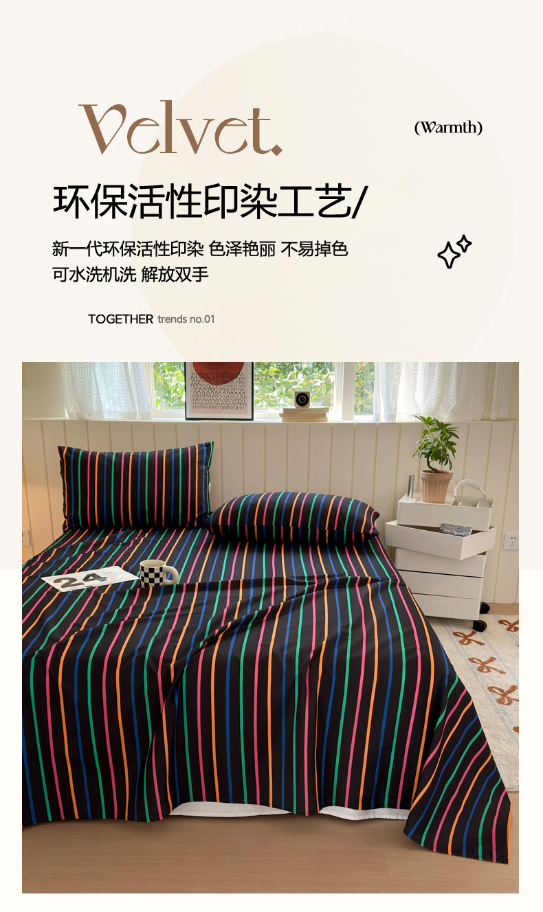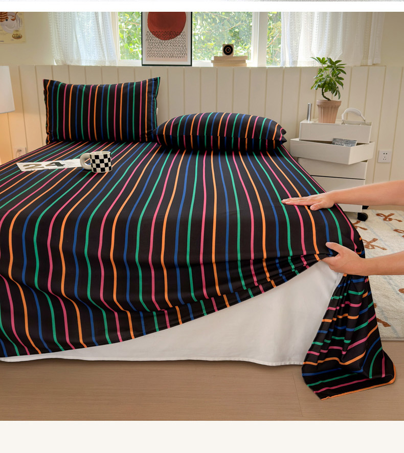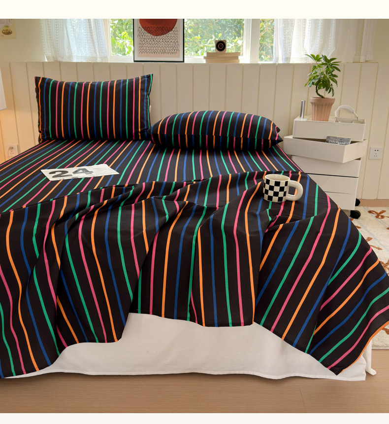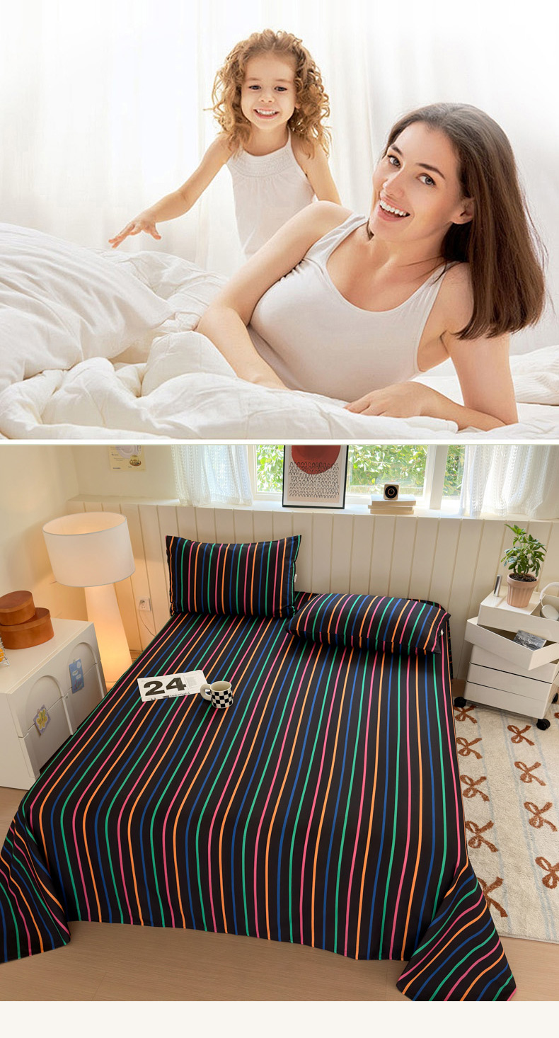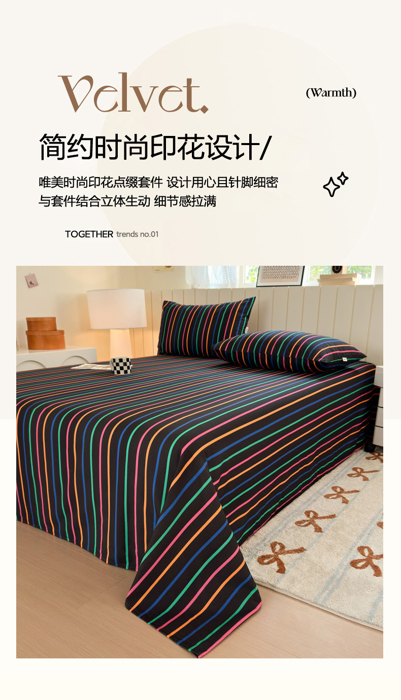 如意朵 2025新款时尚印花全棉加厚磨毛床单 多彩-黑