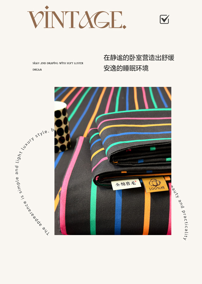商品名称:如意朵 2025新款时尚印花全棉加厚磨毛床单 多彩-黑