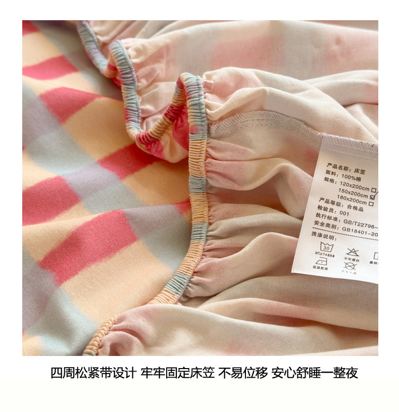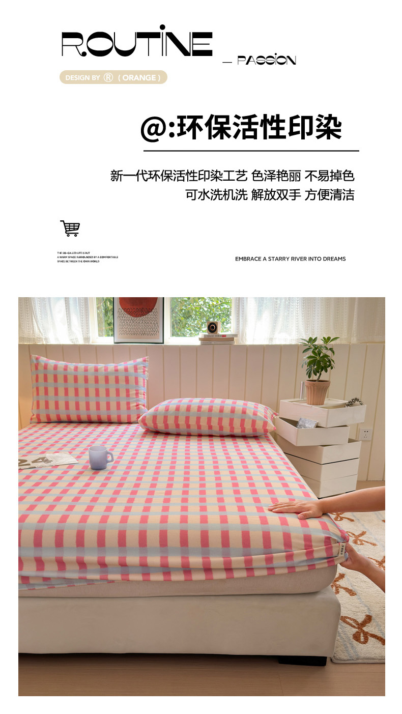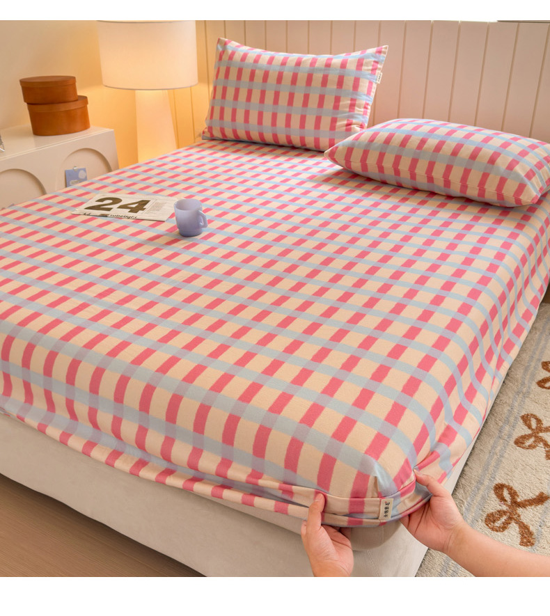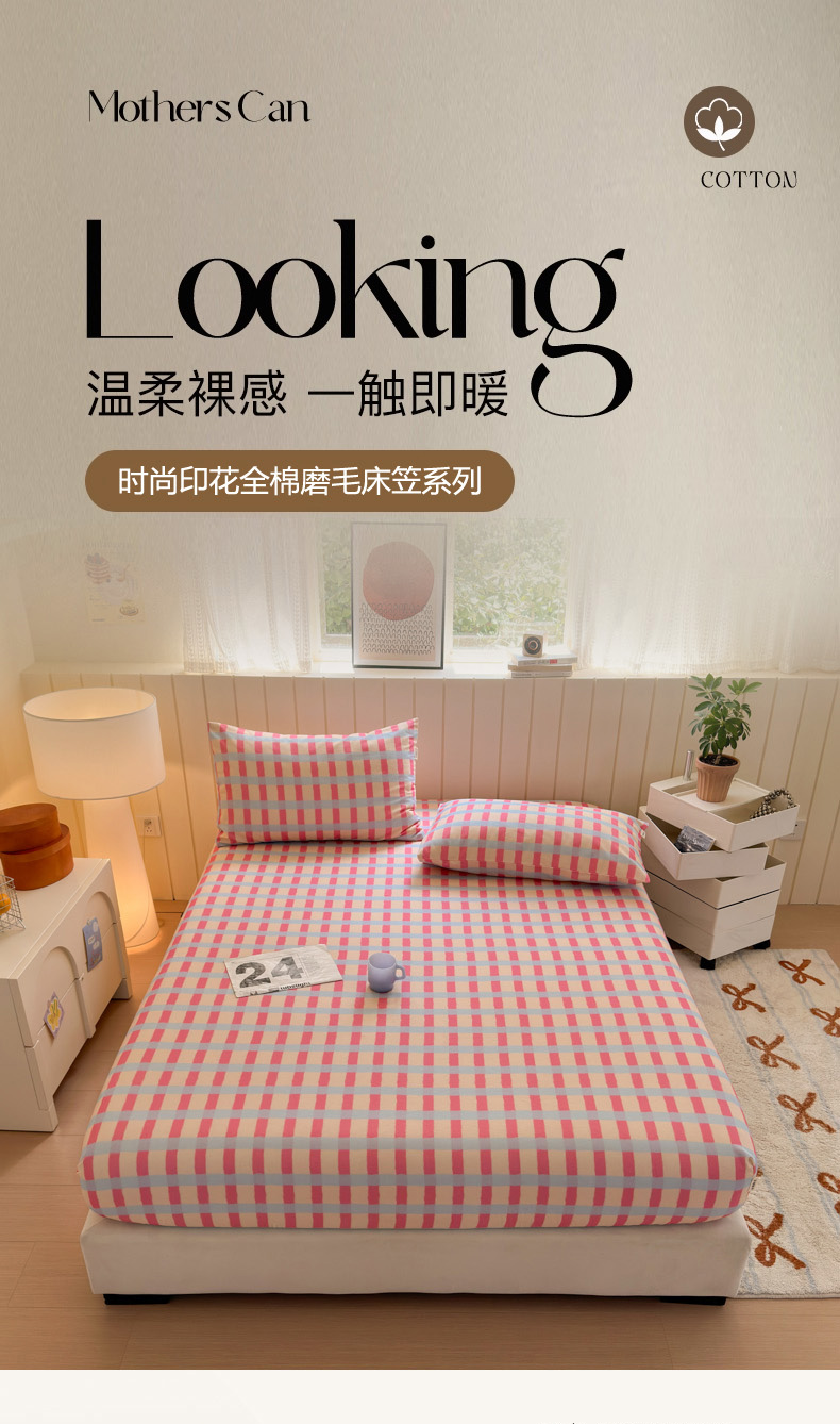 如意朵 2025新款时尚印花全棉加厚磨毛床笠 艾格-粉