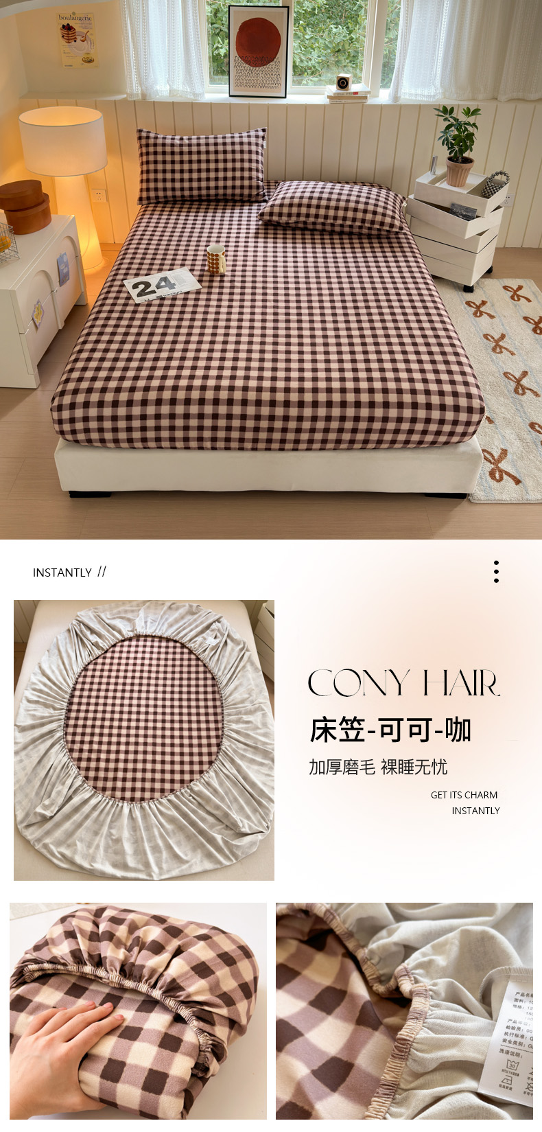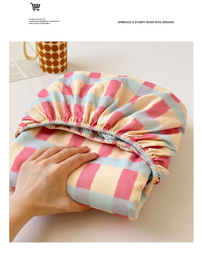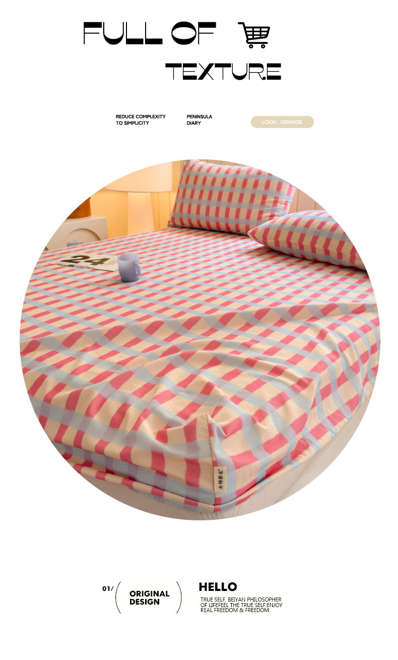 如意朵 2025新款时尚印花全棉加厚磨毛床笠 艾格-粉