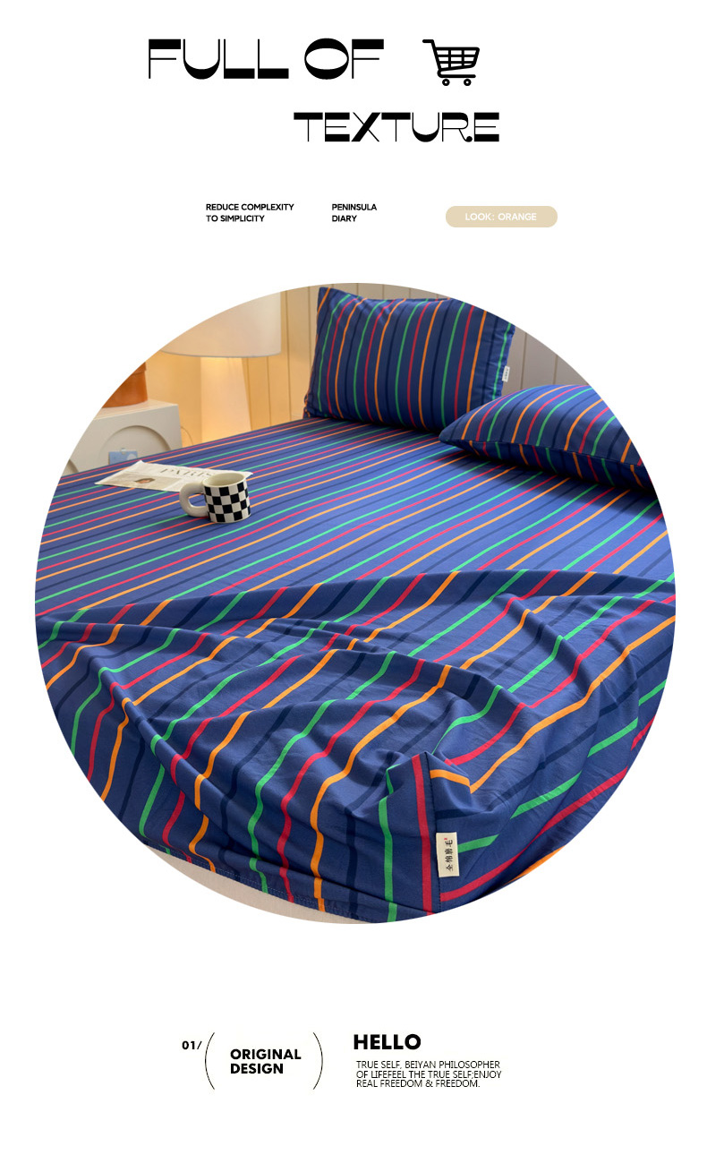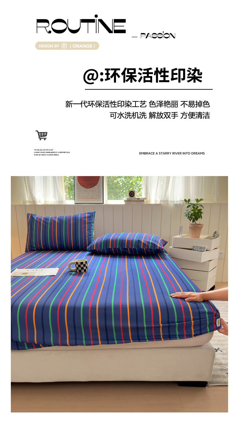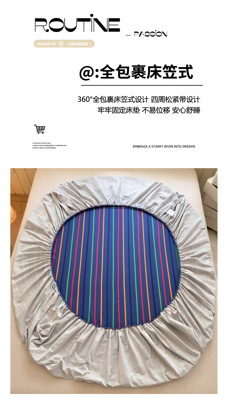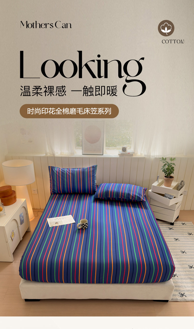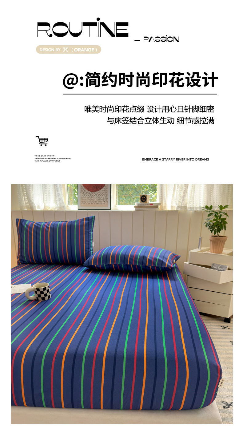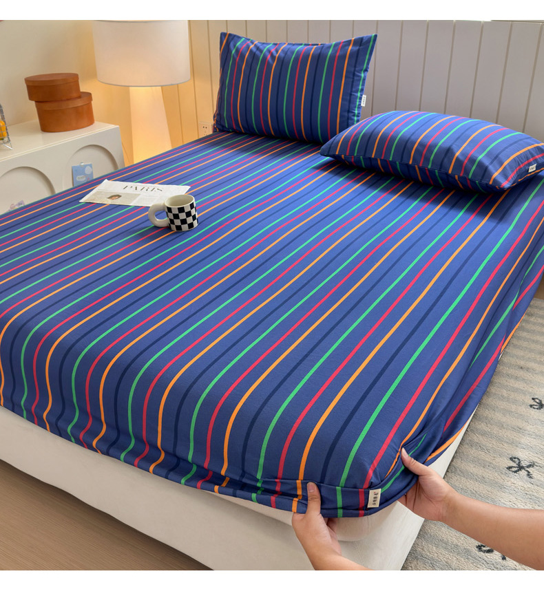 如意朵 2025新款时尚印花全棉加厚磨毛床笠 多彩-蓝