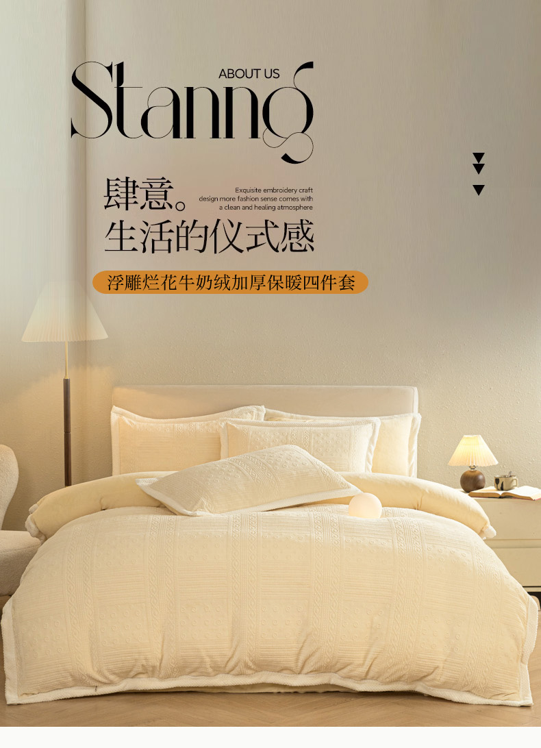 商品名称:(总)眠博士 2025新款洛克款浮雕烂花牛奶绒加厚保暖四件套