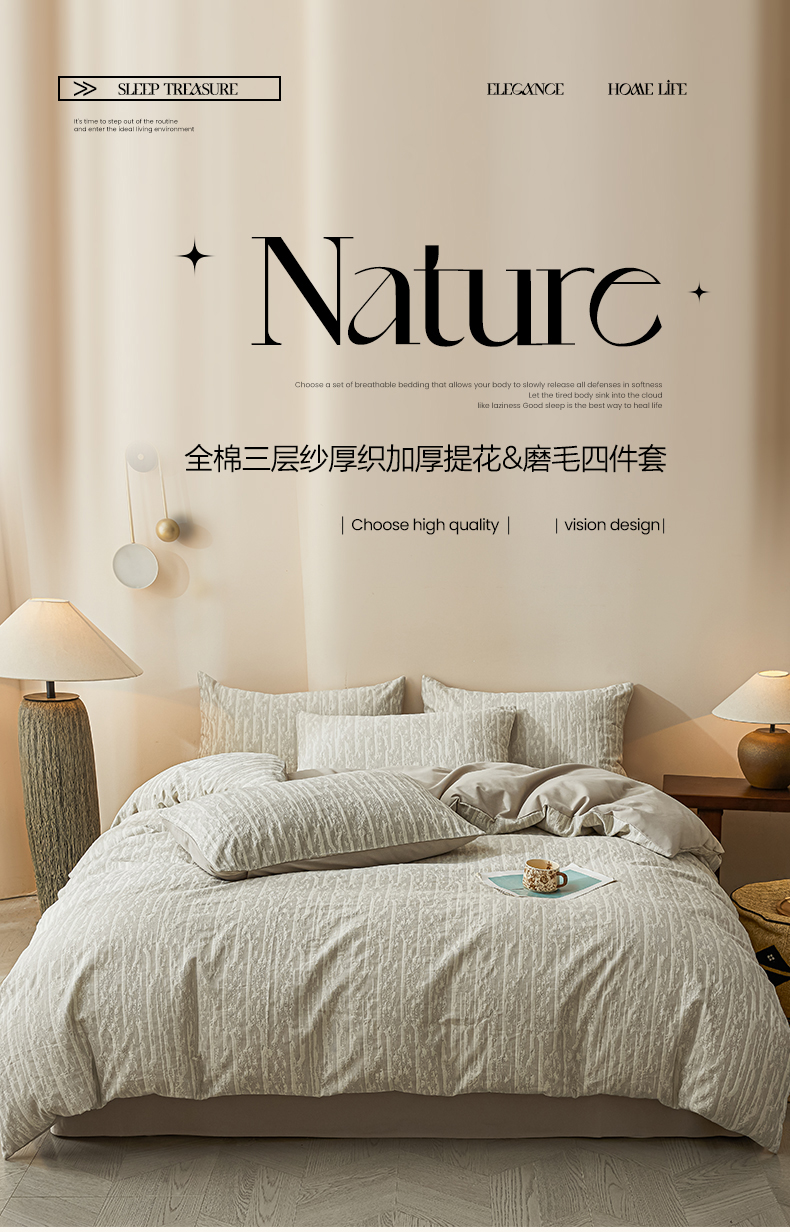(总)莱茵家居 2025新款全棉三层纱厚织提花磨毛四件套