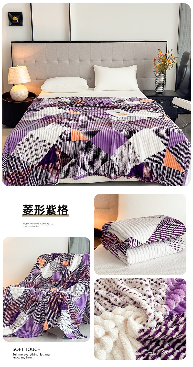 商品名称:璐维斯 2025新款菱形格抽条印花毛毯跨境外贸专供 菱形紫格