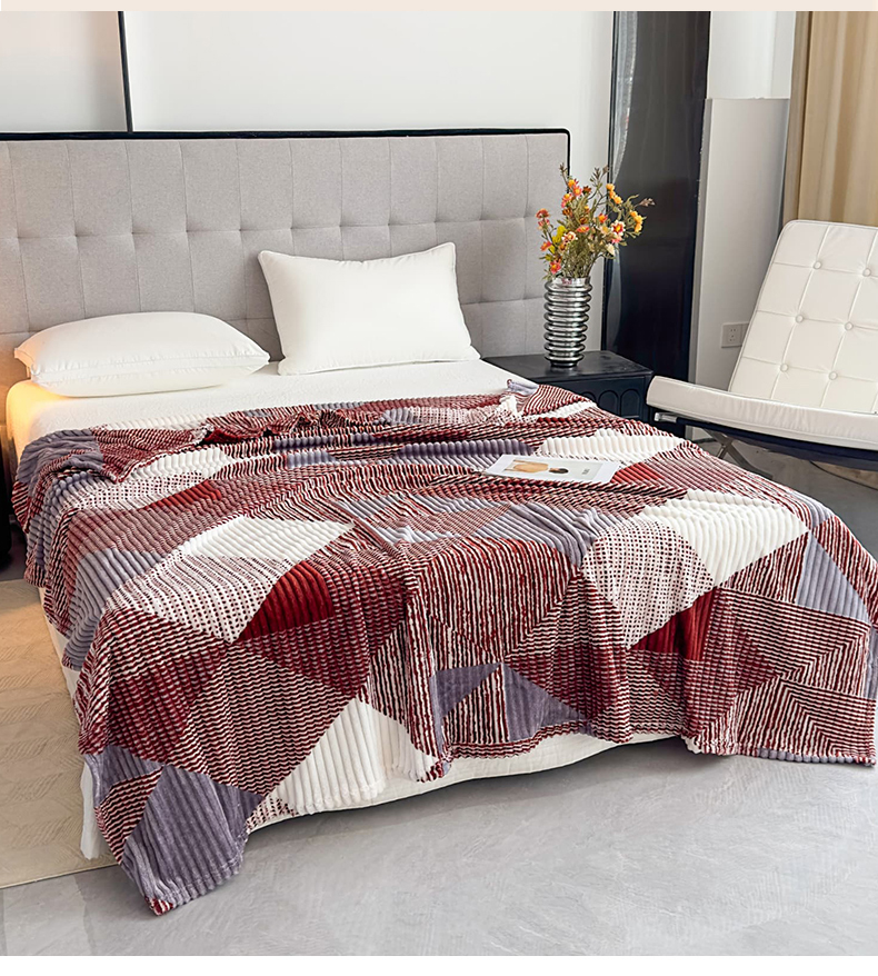 璐维斯 2025新款菱形格抽条印花毛毯跨境外贸专供 菱形紫格