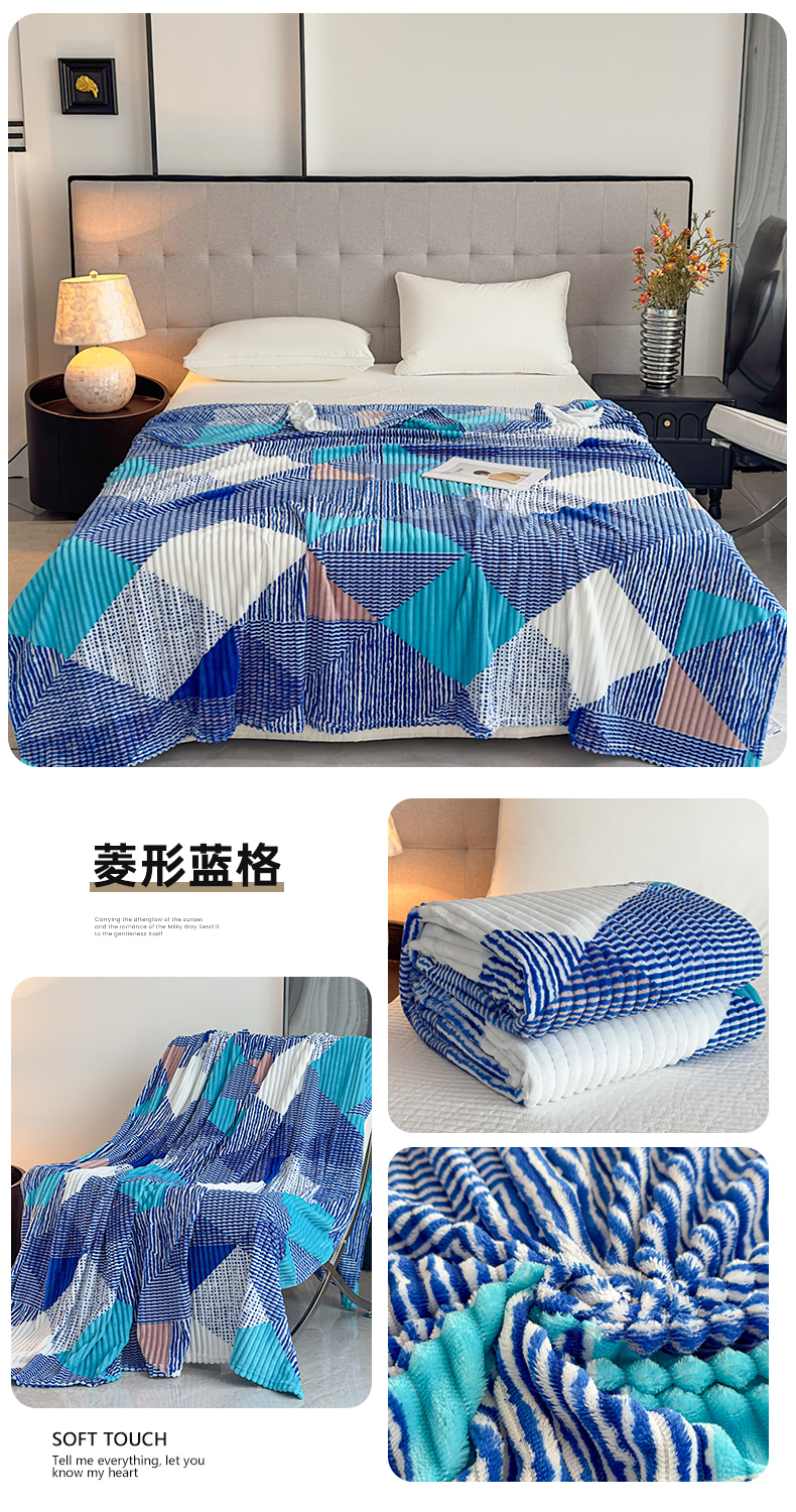 (总)璐维斯 2025新款菱形格抽条印花毛毯跨境外贸专供,菱形紫格,菱形白灰格,菱形蓝格,菱形蓝白格,菱形白蓝格,菱形咖格