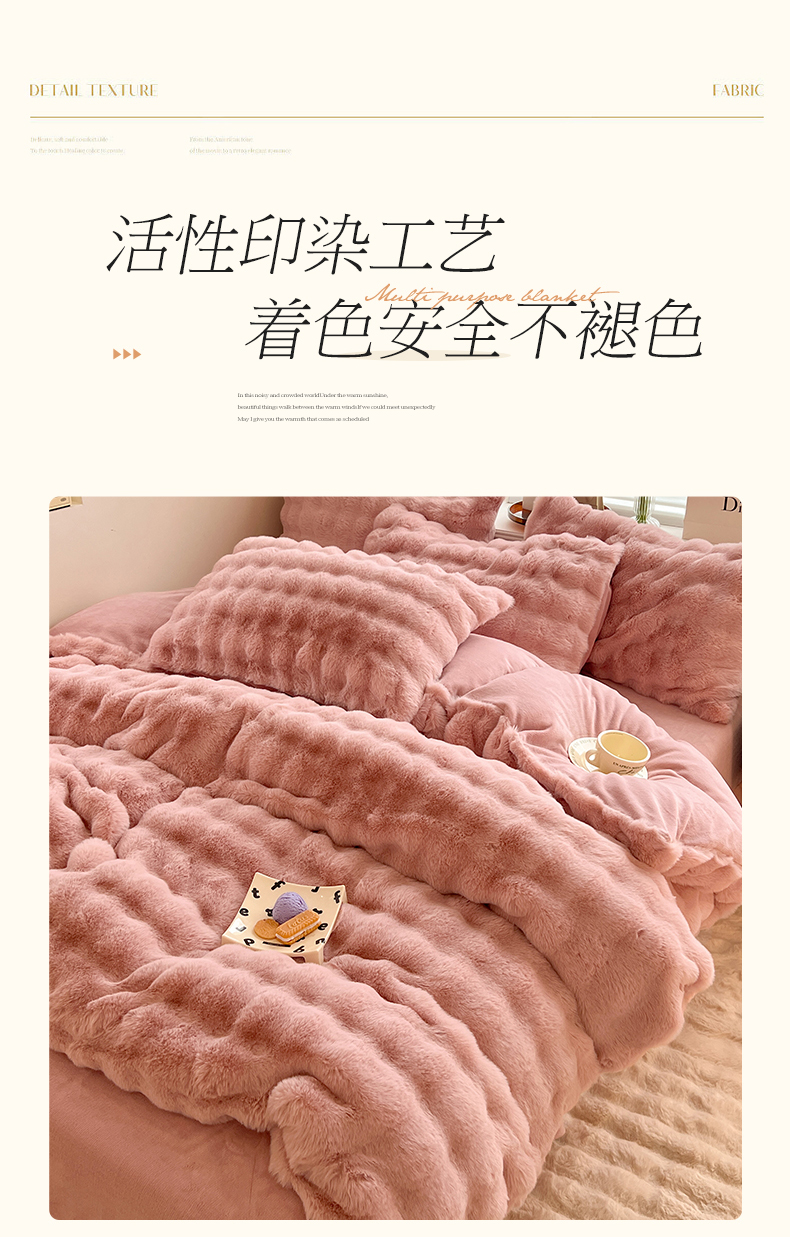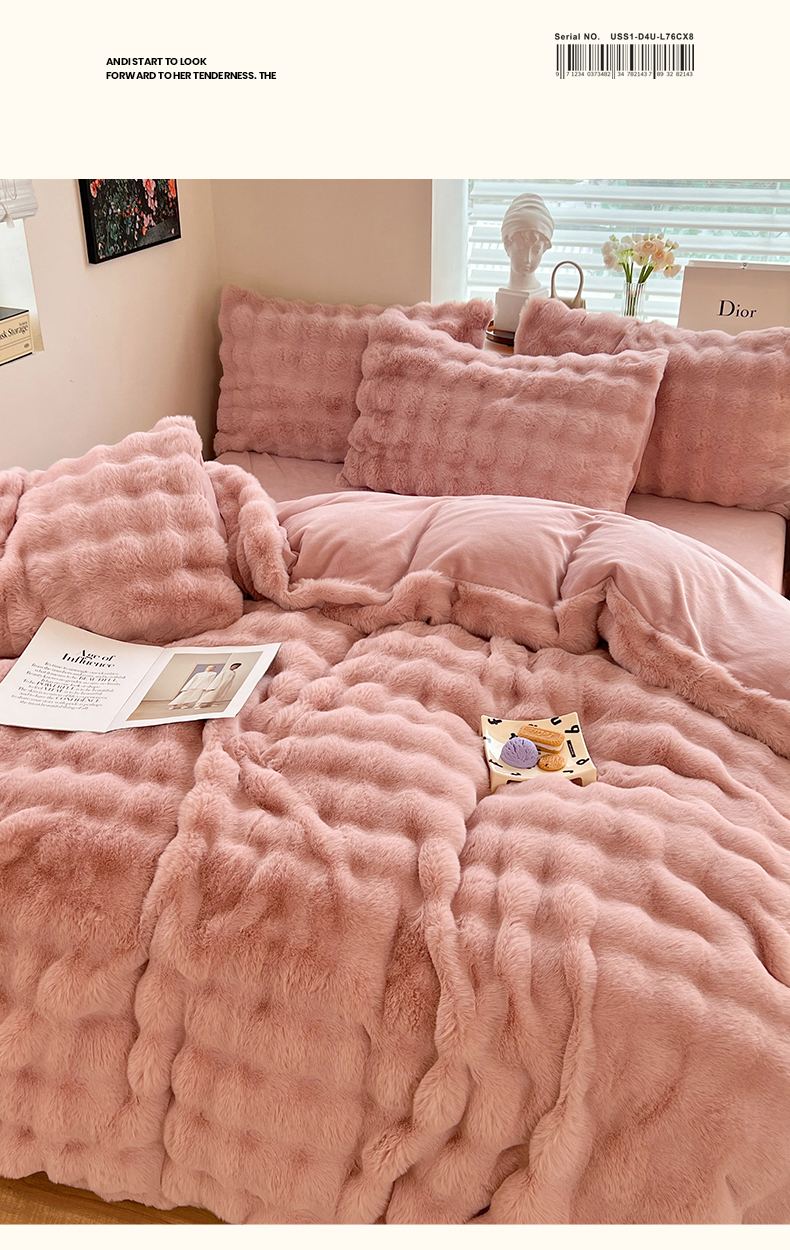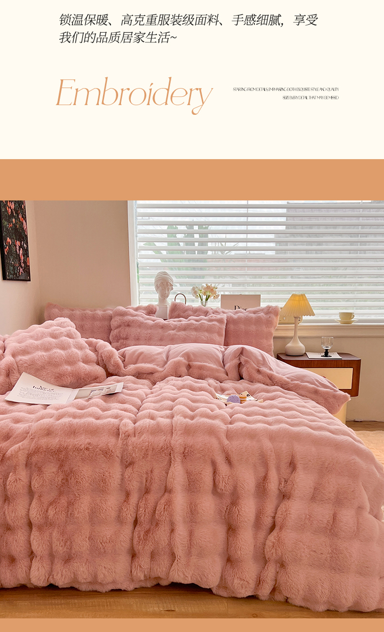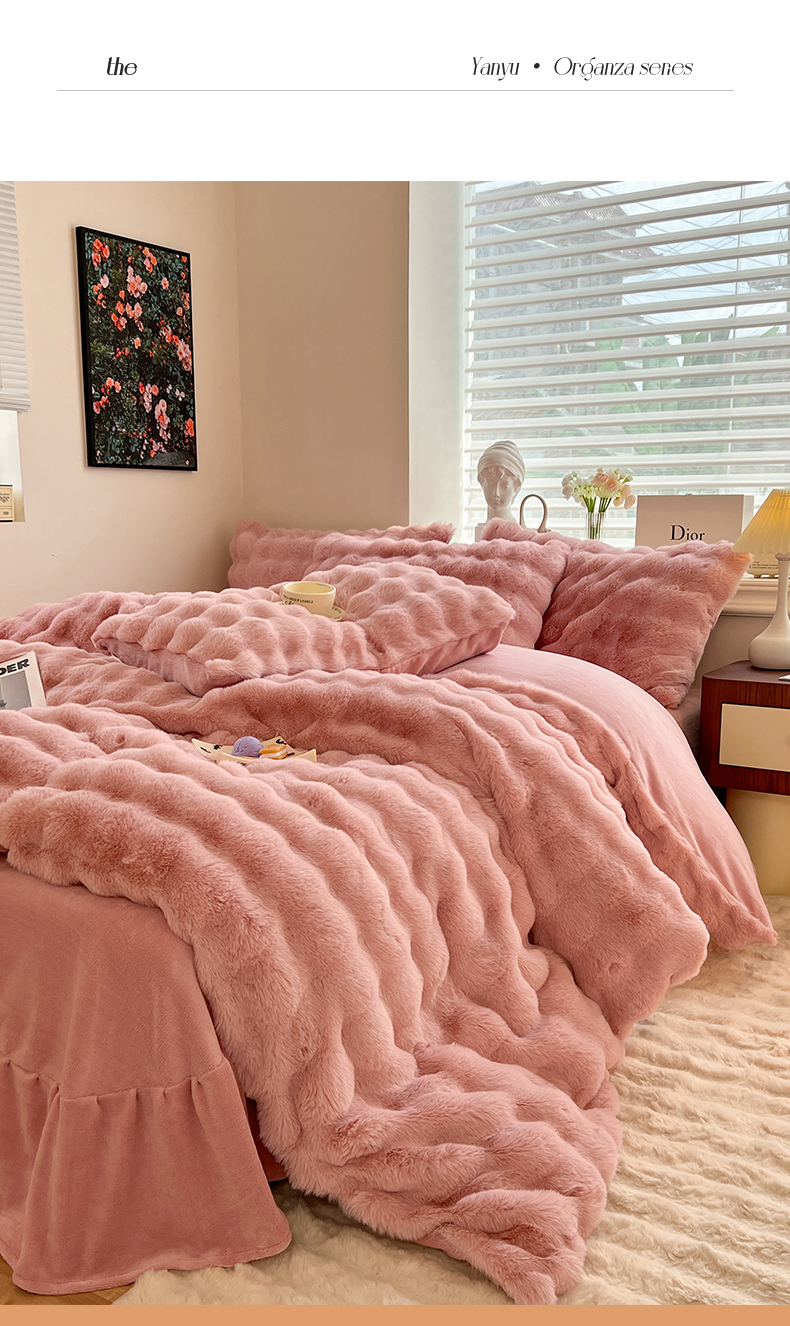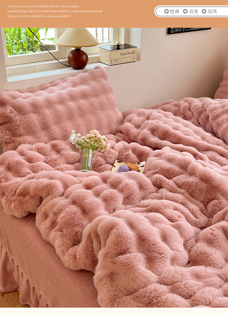 当前位置: 91家纺网 > 商品网购 > 床品套件 > 四件套 > 兔毛绒四件套 > 悦织湾家纺 2025新款A类12斤獭兔毛580克托斯卡纳大泡泡双面兔毛绒四件套 兔兔绒-粉豆沙