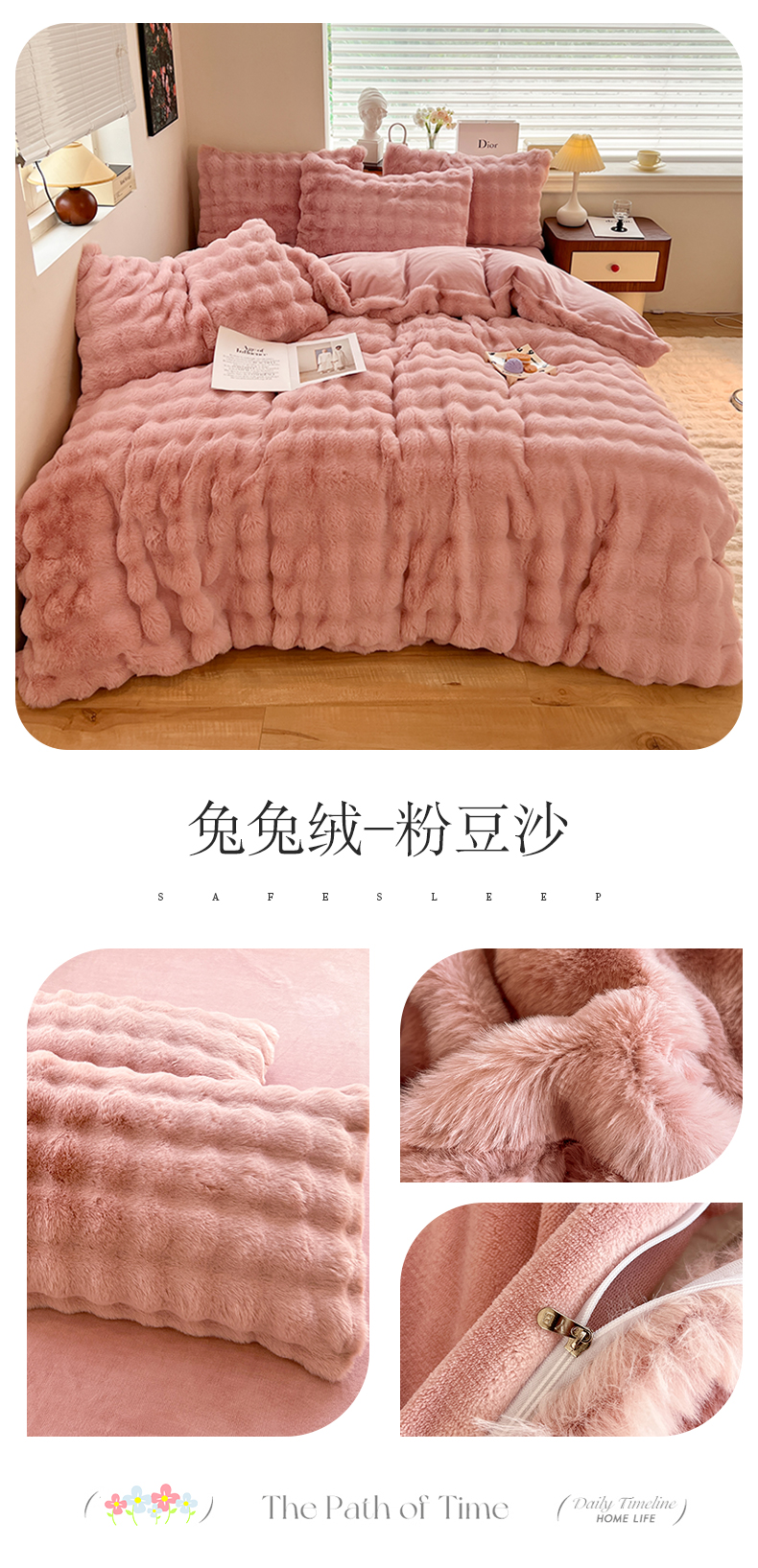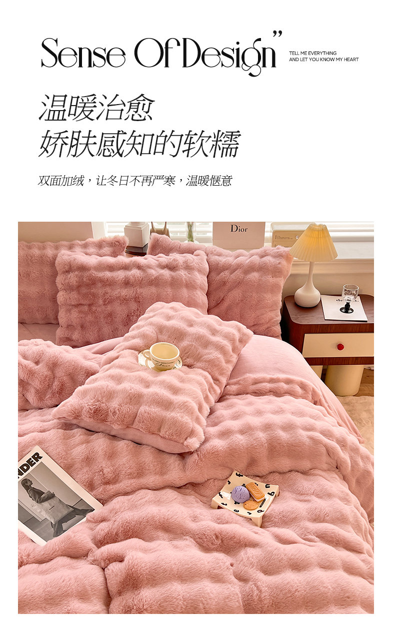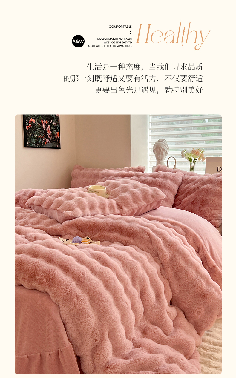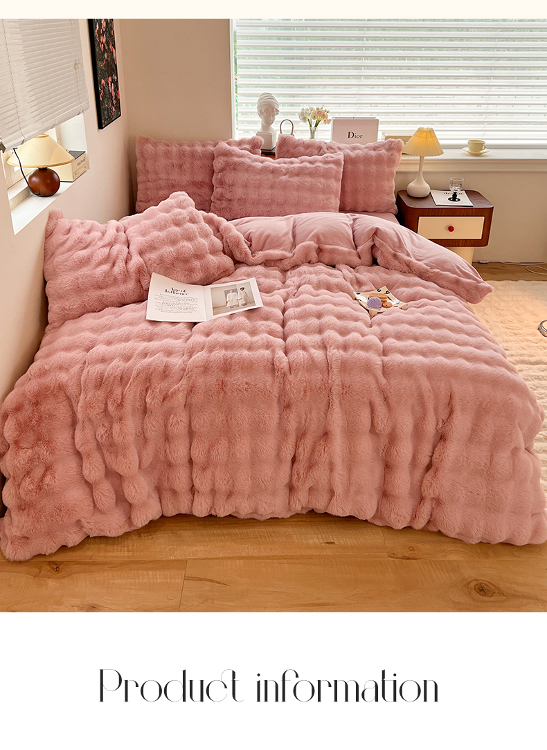 当前位置: 91家纺网 > 商品网购 > 床品套件 > 四件套 > 兔毛绒四件套 > 悦织湾家纺 2025新款A类12斤獭兔毛580克托斯卡纳大泡泡双面兔毛绒四件套 兔兔绒-粉豆沙