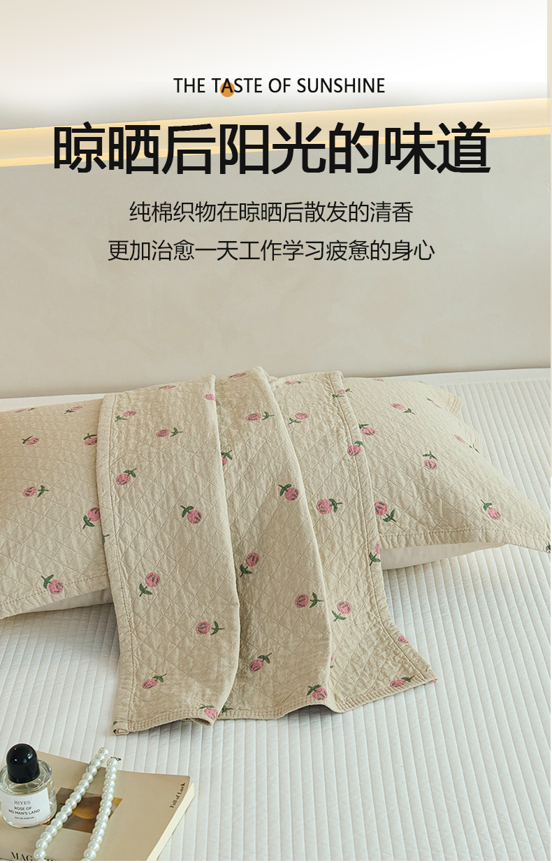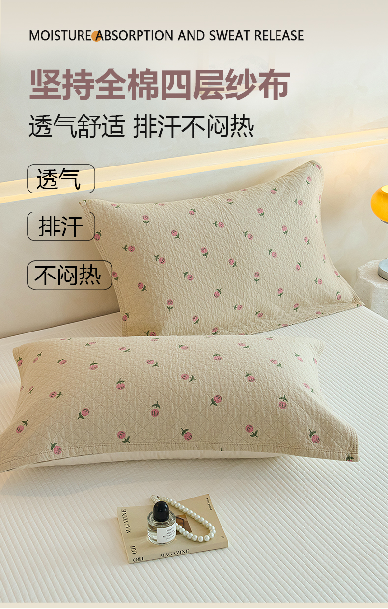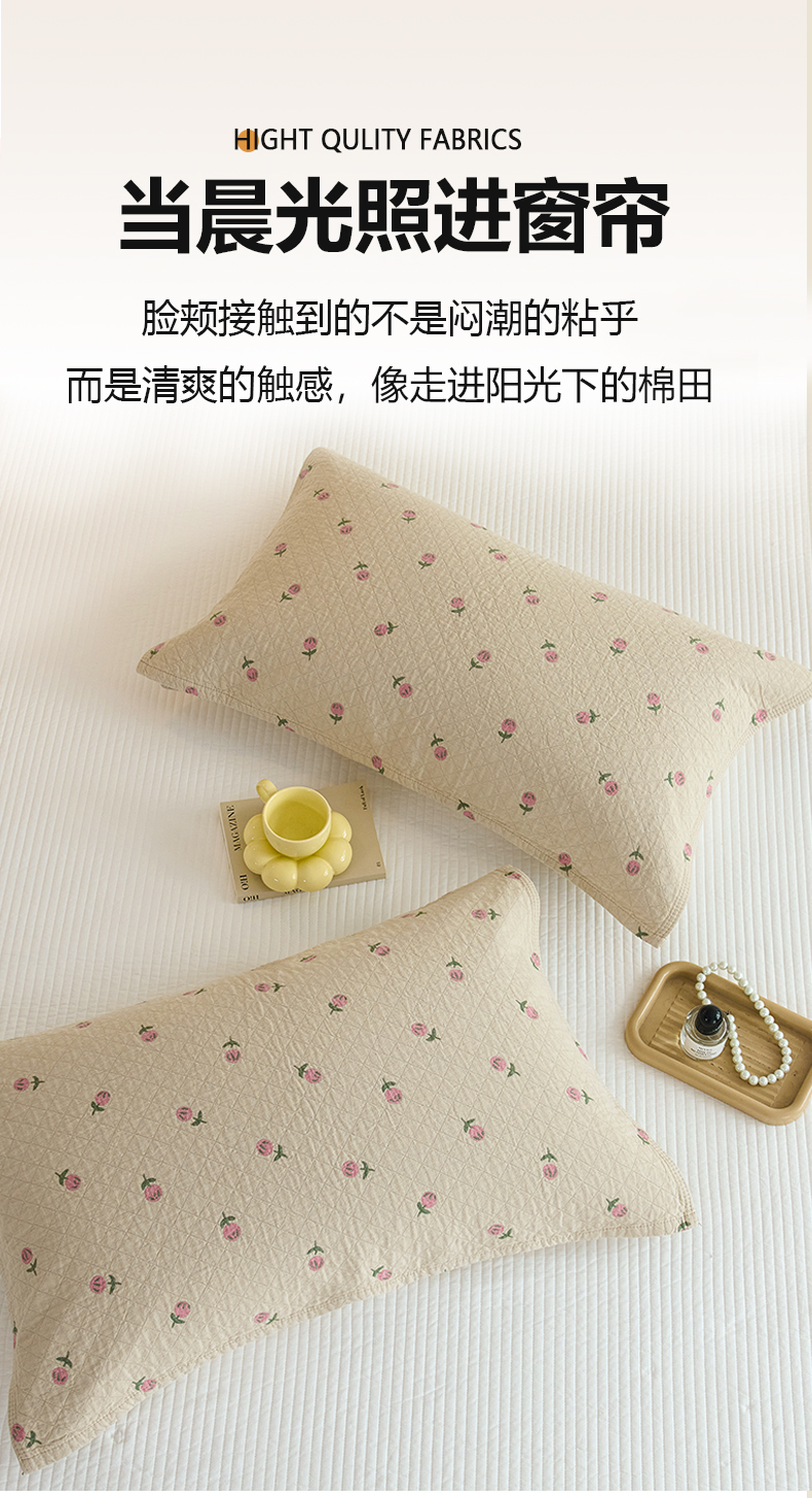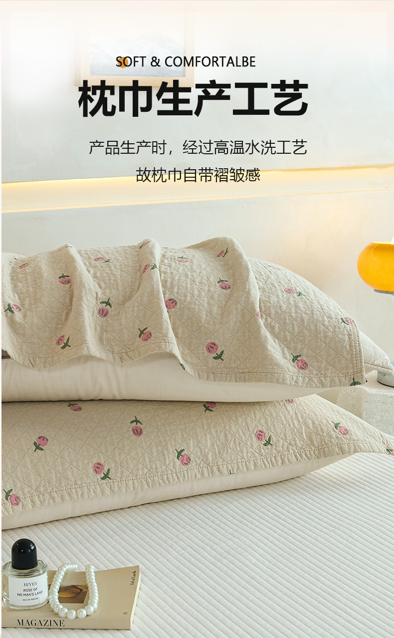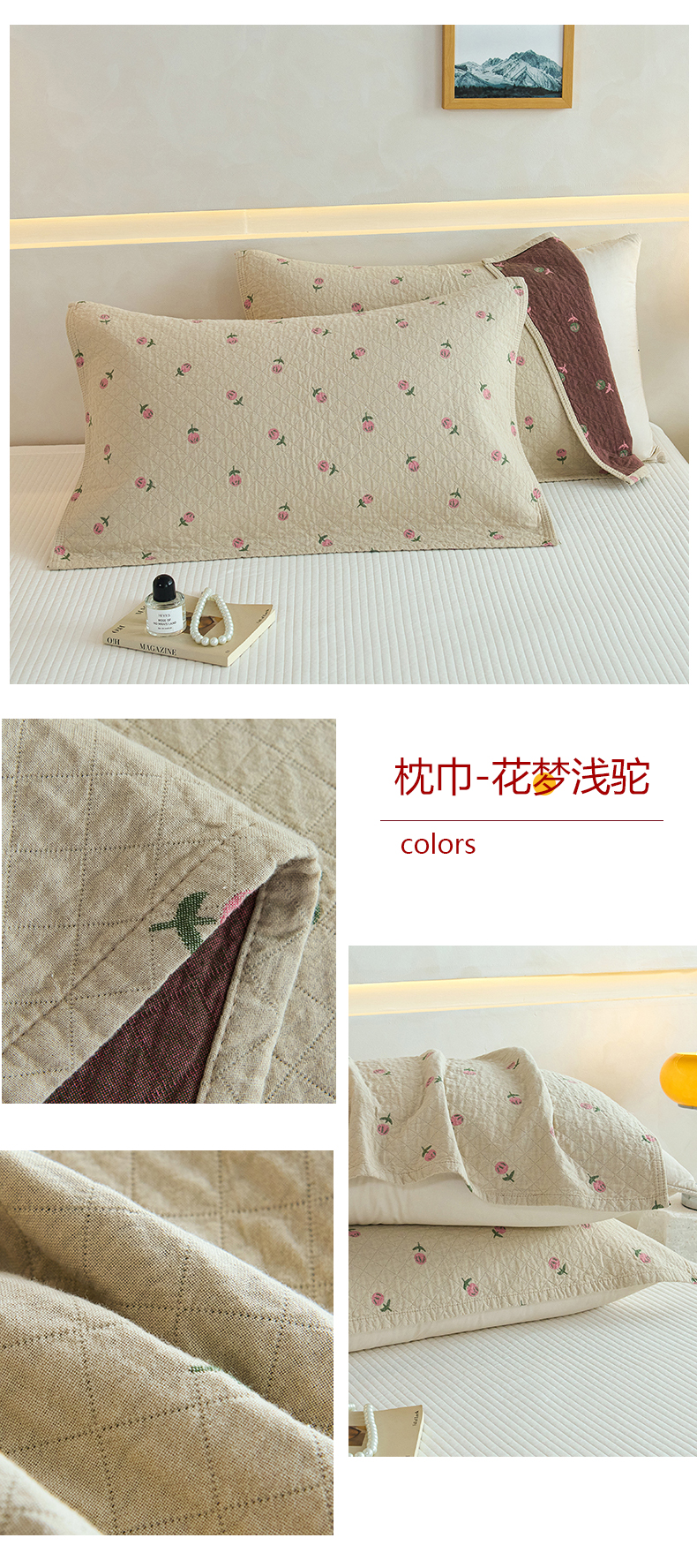 商品名称:棠薇家纺 2025新款 枕巾纯棉纱布水洗全棉纱布纯棉耐脏吸汗透气预缩水 花梦浅驼