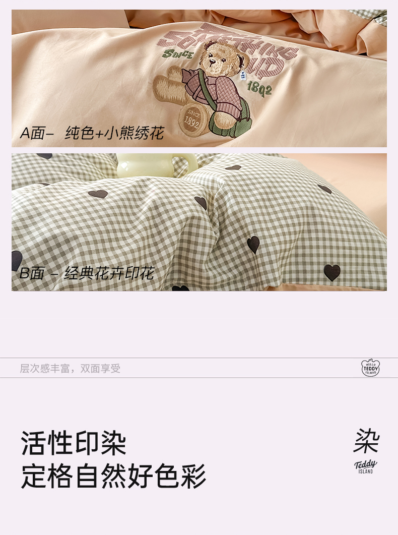 (总)泰迪爱兰Teddy ISLAND 2025新款40支全棉印花刺绣四件套,烟雨花间,印记时光,童年诗篇,挽夏-绿,迪莉娅,守护甜心,素然-米