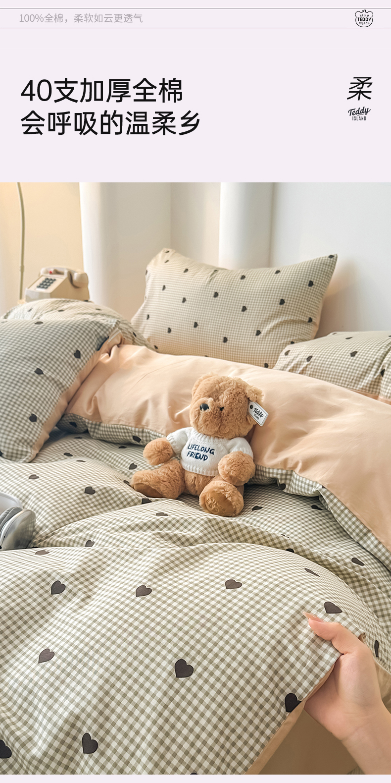 泰迪爱兰Teddy ISLAND 2025新款40支全棉印花刺绣四件套 守护甜心