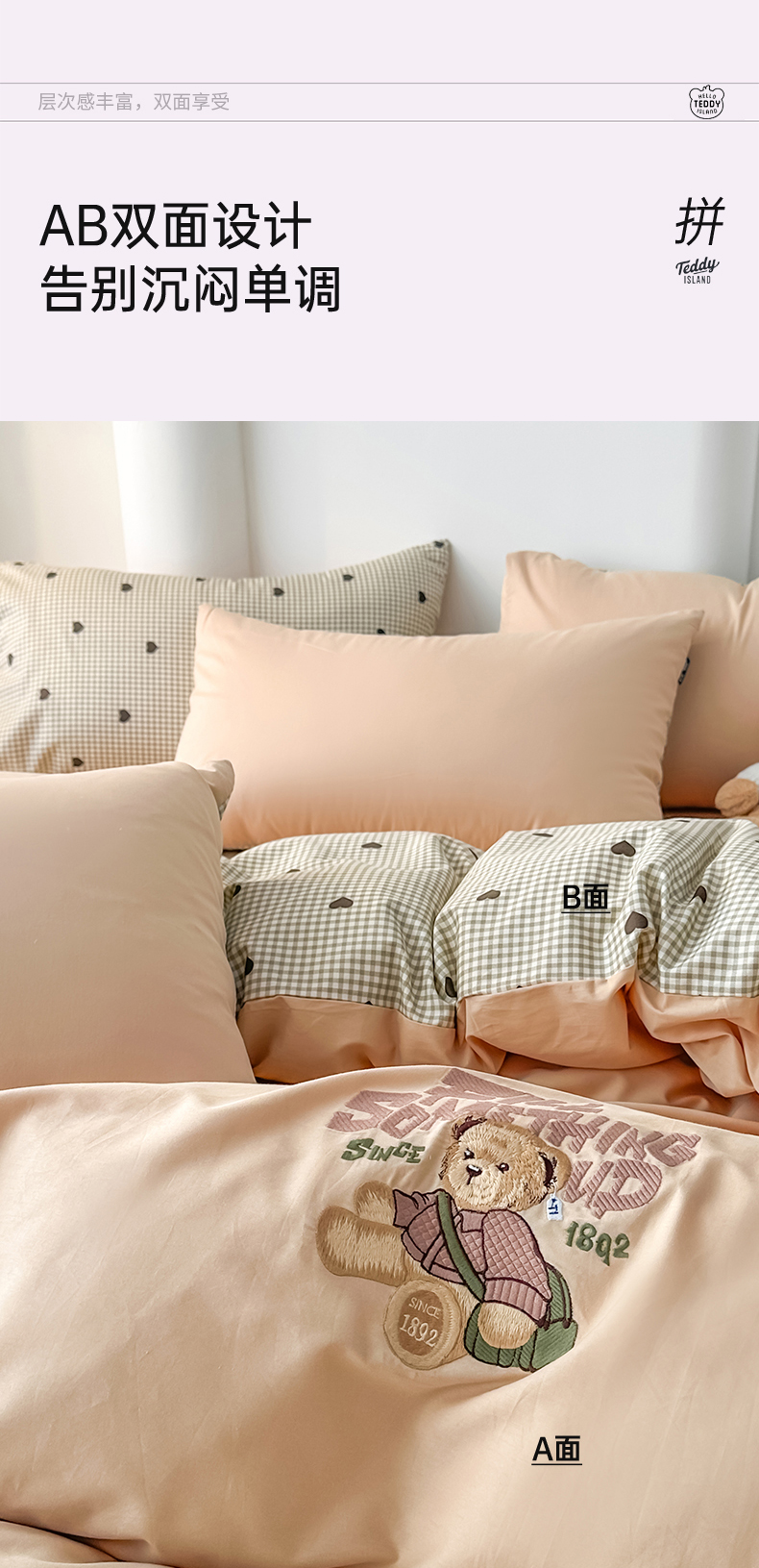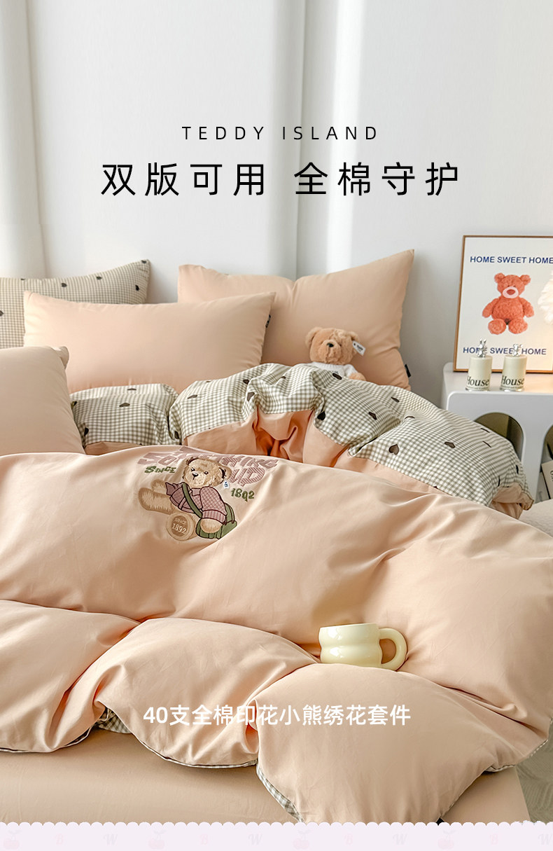商品名称:泰迪爱兰Teddy ISLAND 2025新款40支全棉印花刺绣四件套 守护甜心