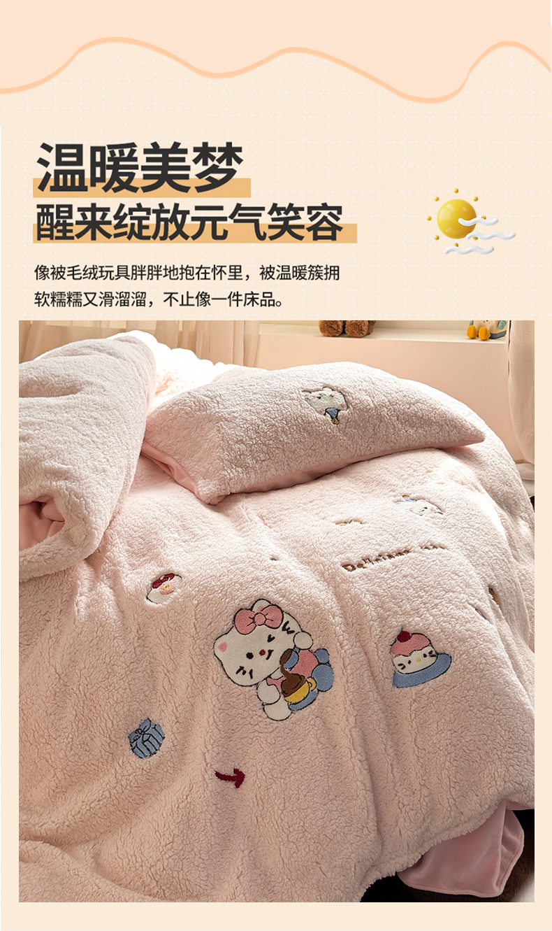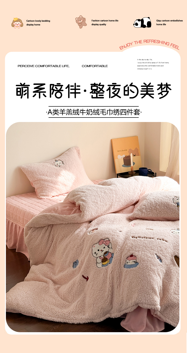 当前位置: 91家纺网 > 商品网购 > 床品套件 > 四件套 > 牛奶绒四件套 > TT.one 塔塔家居 2025新款羊羔绒牛奶绒暖绵绵毛巾绣床单床裙床盖款四件套 喵喵糖果屋