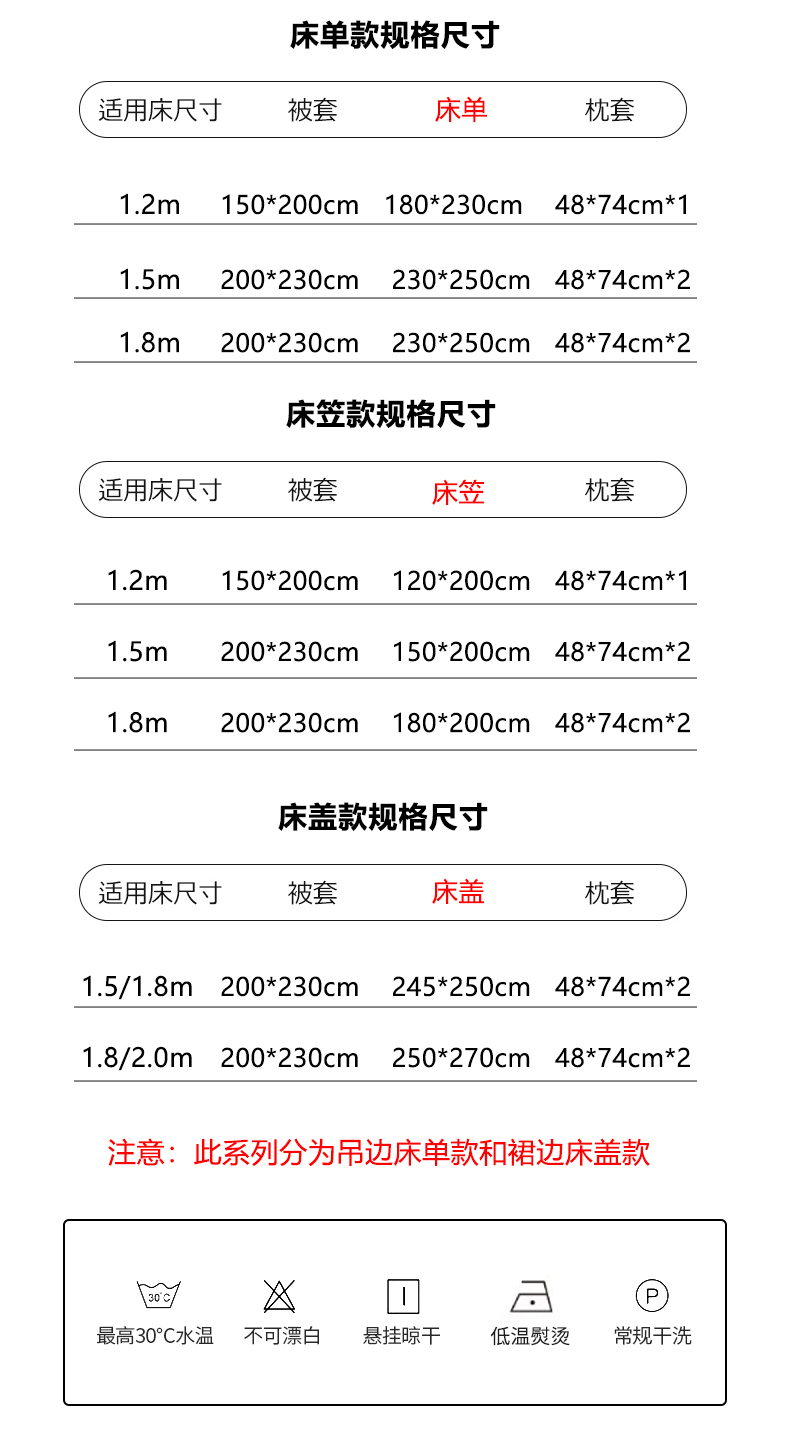 1.2m床笠款三件套 | ¥105.00 |