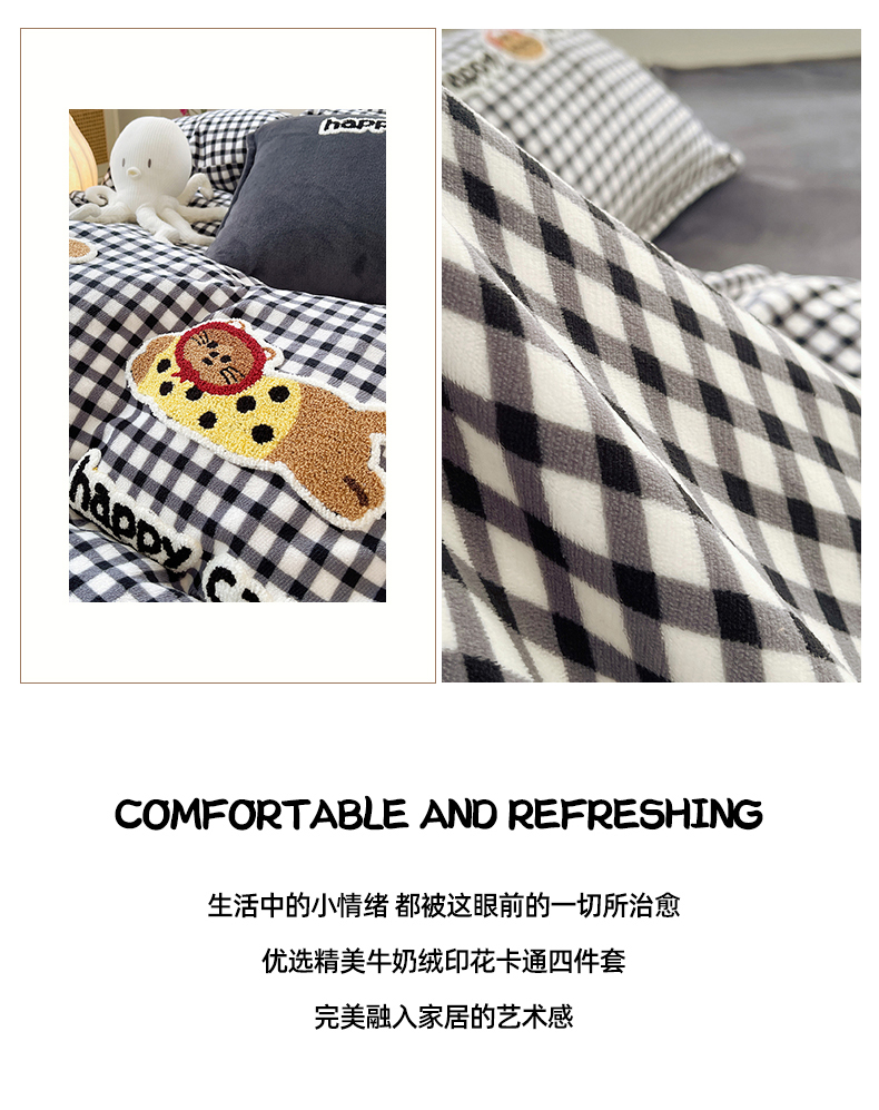 (总)炫拼家纺 2025新款大版数码印花卡通高克重牛奶绒四件套,乔治汪汪,快乐小象,熊和兔,啵啵熊,扭扭狗,苹果狗,豹纹兔兔,泡泡狗,搞怪兔兔,向钱看,元气企鹅