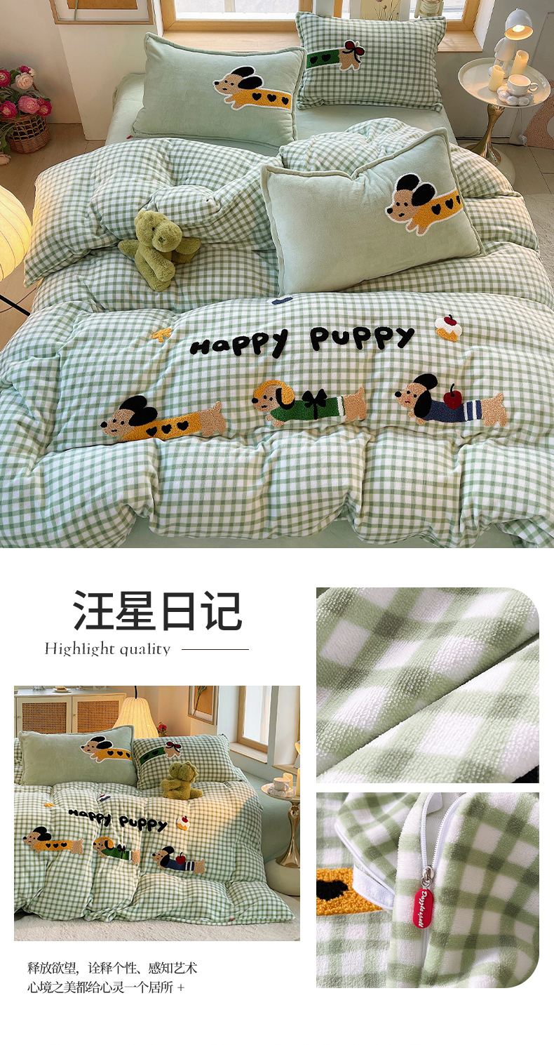 (总)炫拼家纺 2025新款全棉磨毛卡通贴布绣加厚毛巾绣纯棉四件套-曲奇系列,曲奇-苹果狗,曲奇-Good卡皮,曲奇-波点猫,曲奇-好朋友,曲奇-红军熊猫,曲奇-举高高,曲奇-晚安猫