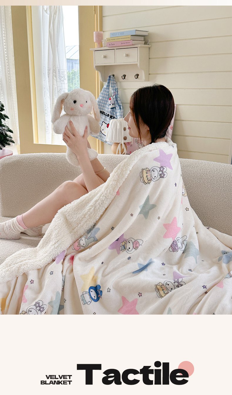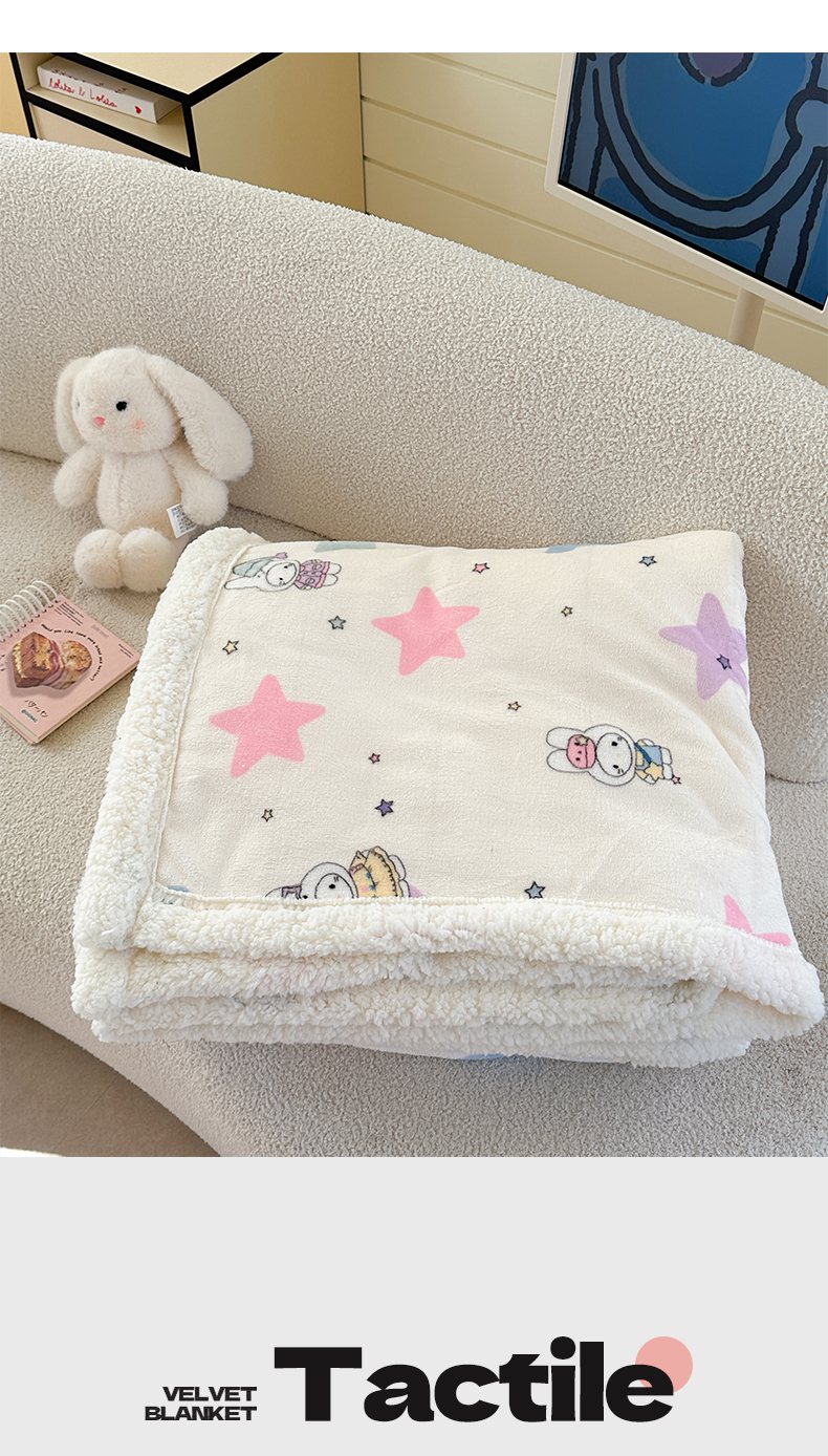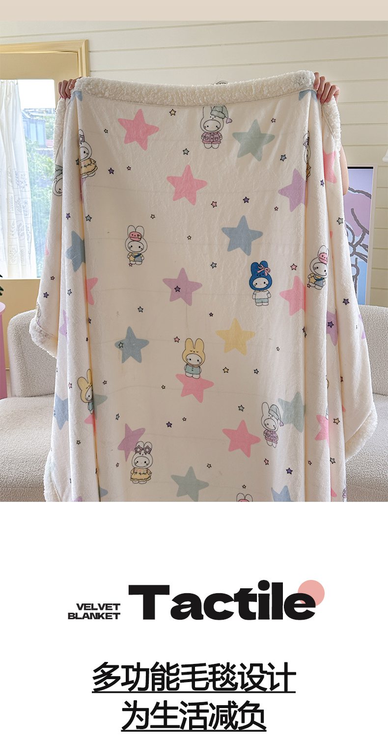 贝扬思家纺 2025新款秋冬可爱系牛奶绒羊羔绒多功能毛毯奶盖系列 奶盖-星星米菲