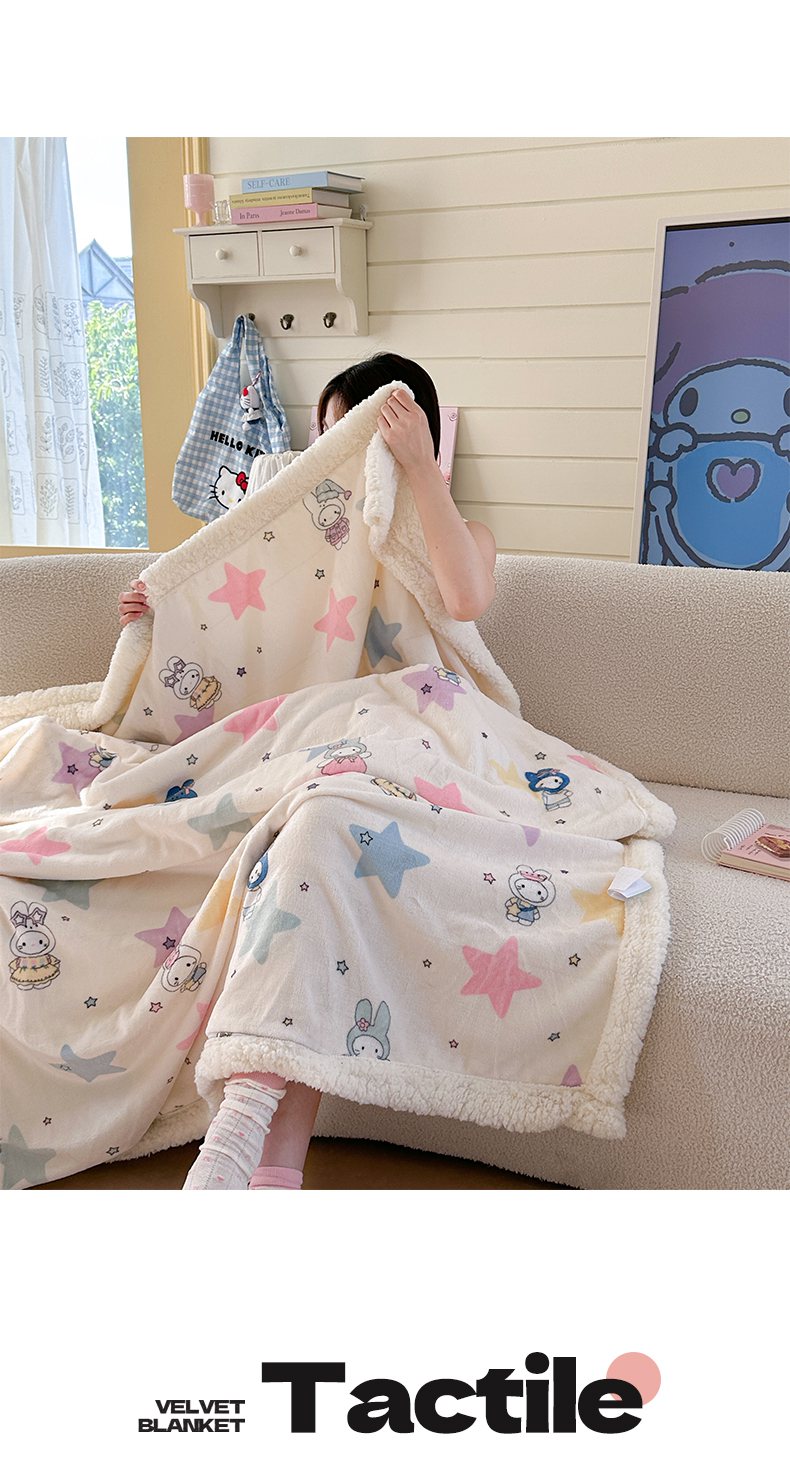 商品名称:贝扬思家纺 2025新款秋冬可爱系牛奶绒羊羔绒多功能毛毯奶盖系列 奶盖-星星米菲