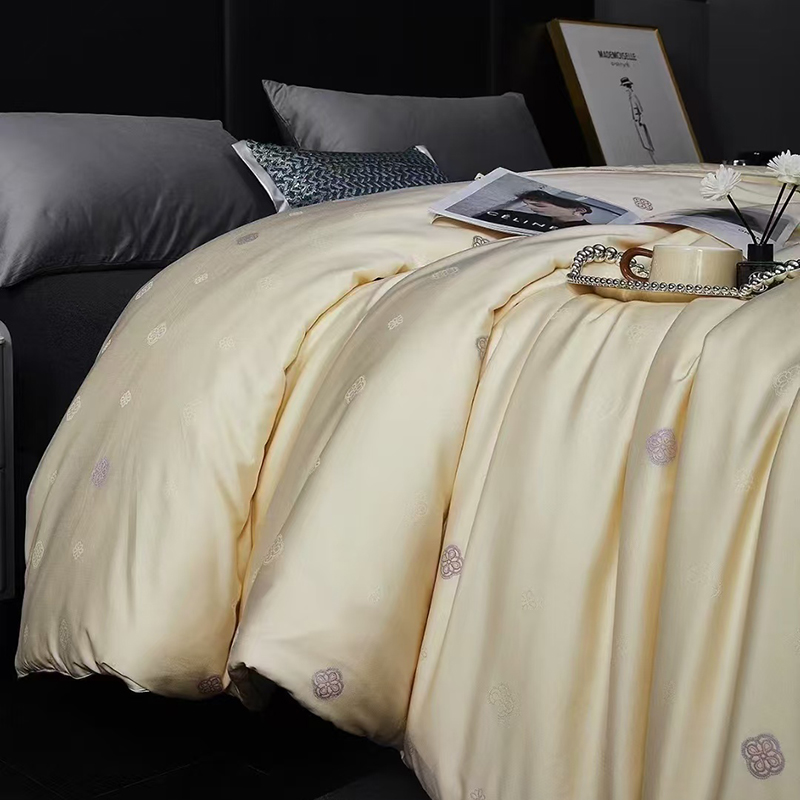 • 91家纺网 家纺一手货源 找家纺 (总)玖玖爱家纺 2026新款意式高奢色织大提花埃及棉系列四件套,金色,紫色