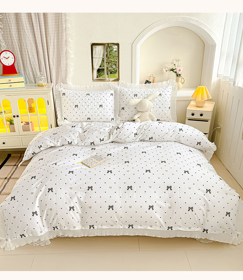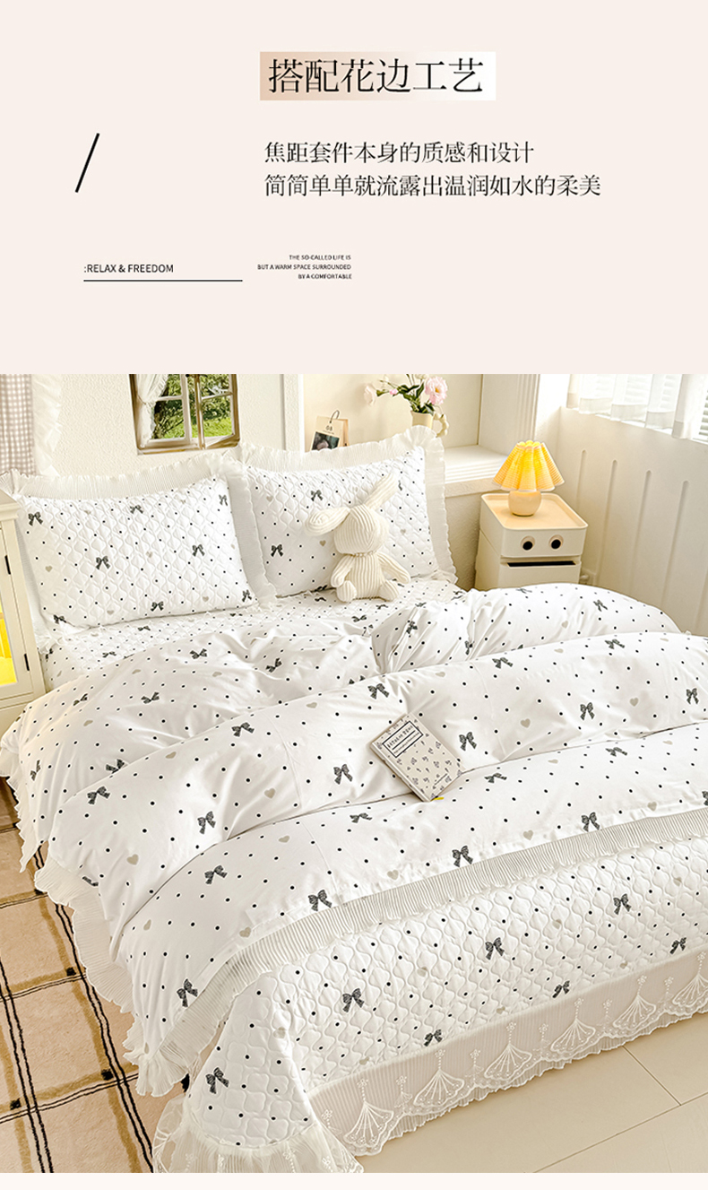 冬然 2024新款全棉床盖纯棉床盖夹棉床单全棉床单纯棉床单 波点情节
