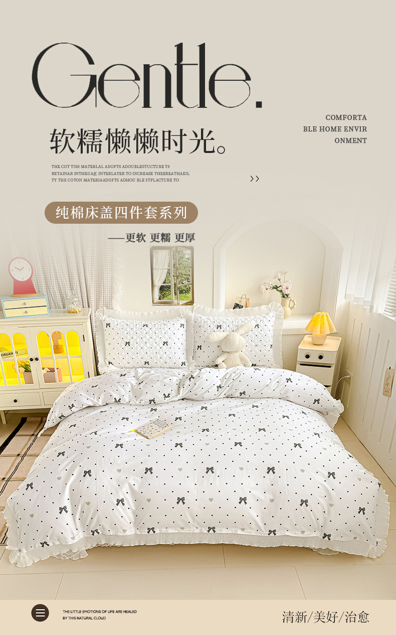 • 91家纺网 家纺一手货源 找家纺 冬然 2024新款全棉床盖纯棉床盖夹棉床单全棉床单纯棉床单 波点情节