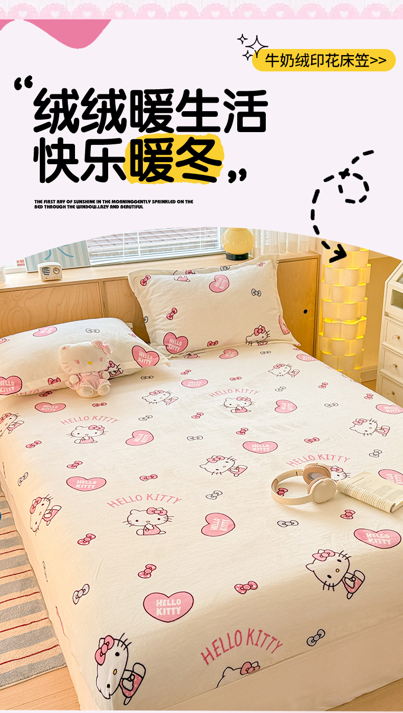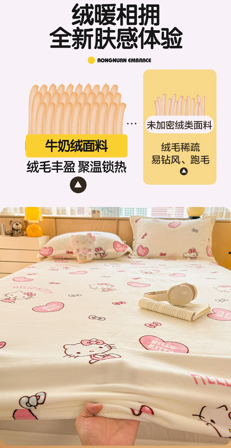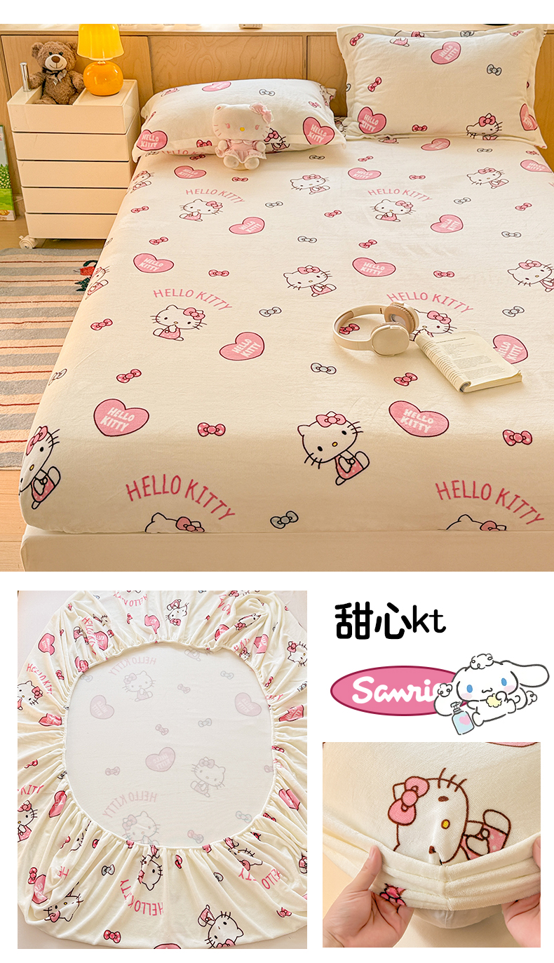 • 91家纺网 家纺一手货源 找家纺 名兮-2025经典奥特曼-三丽鸥高克重印花牛奶绒床笠 甜心kt
