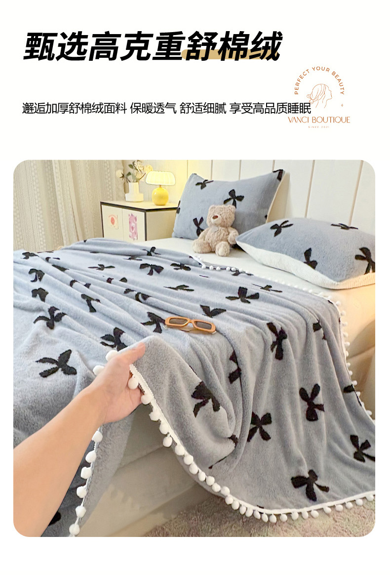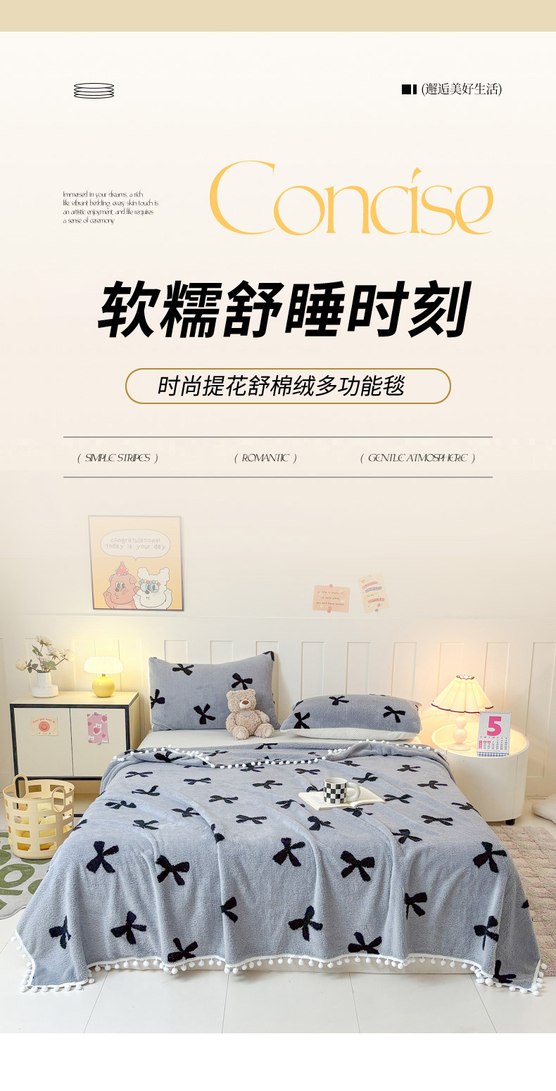 (总)恋佳居 2025新款高克重提花舒棉绒吊球花边毛毯