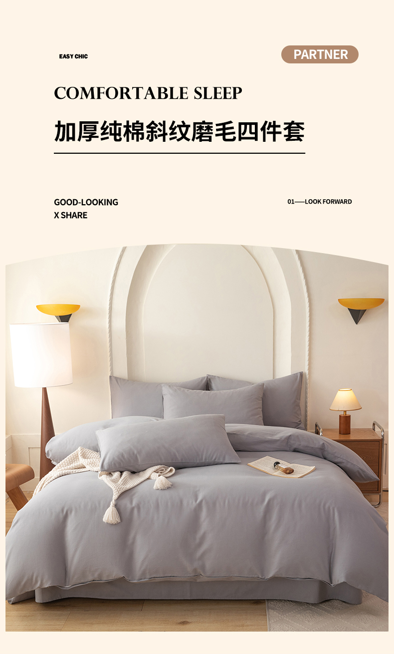 当前位置: 91家纺网 > 商品网购 > 床品套件 > 四件套 > 全棉普通四件套 > 八十八家纺 2025新款纯棉加厚磨毛四件套及单品系列-四件套 加厚中灰