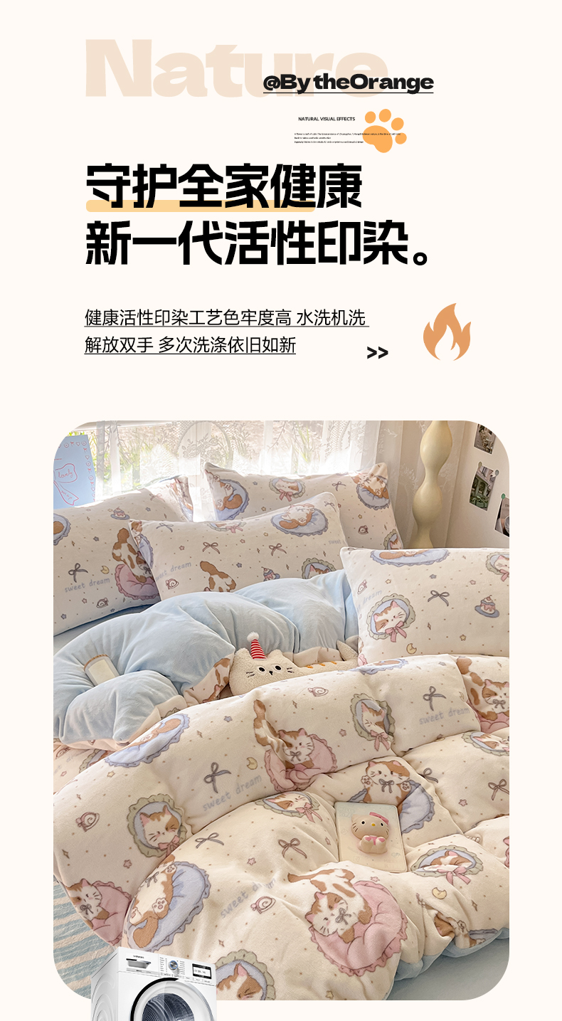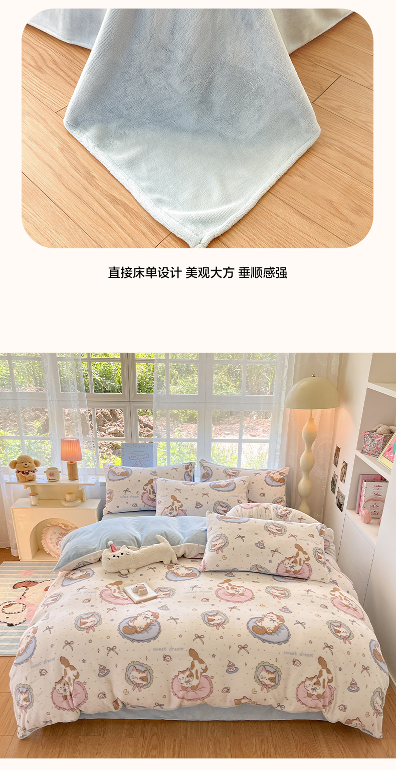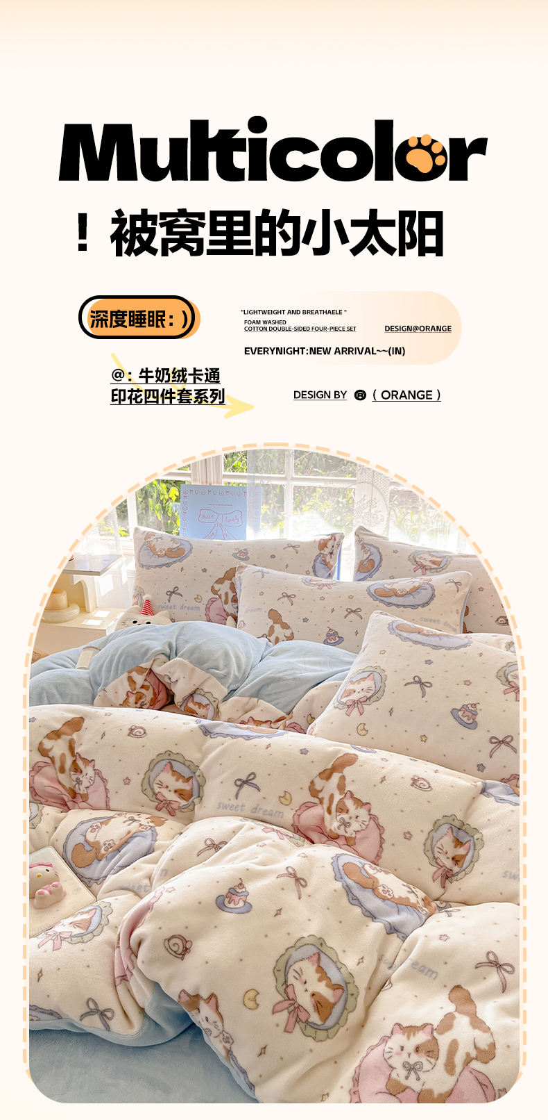 如一 2025新款高克重卡通印花牛奶绒四件套第二批 小花喵
