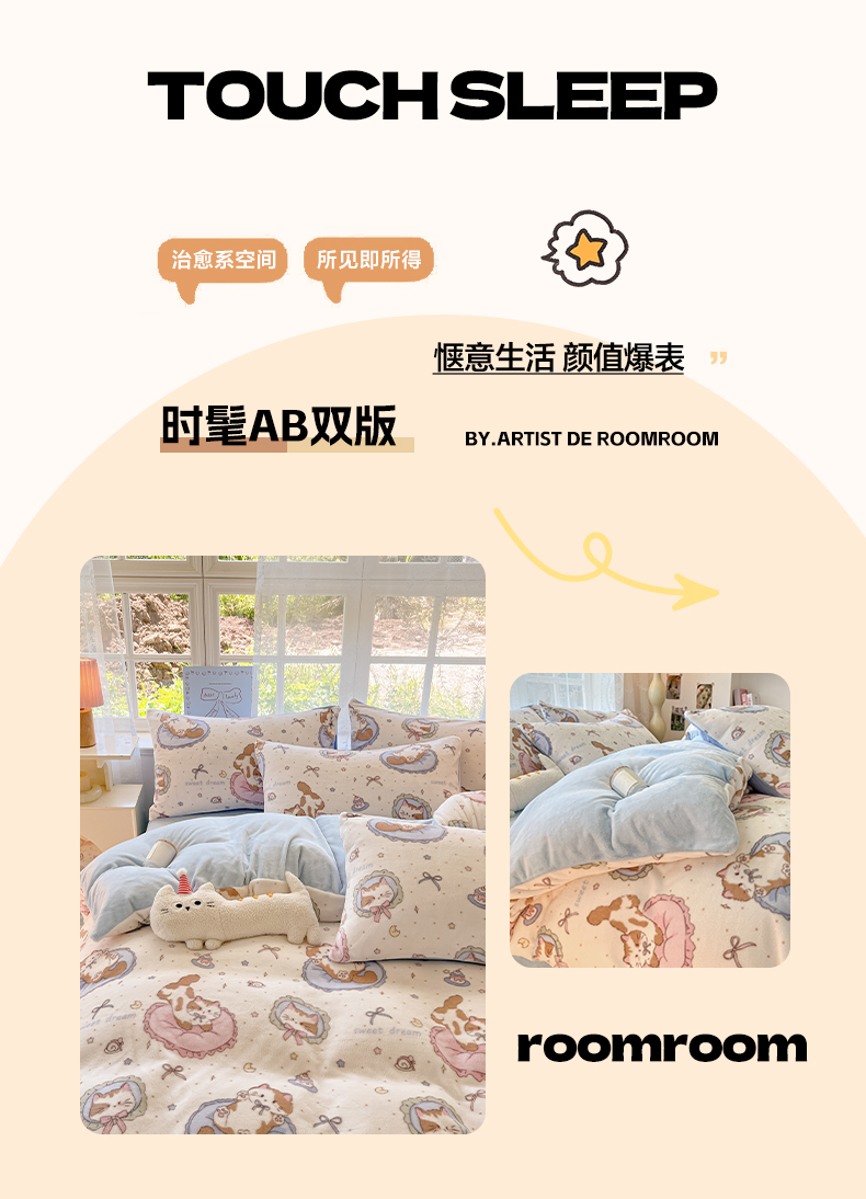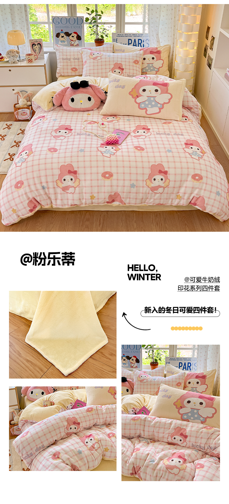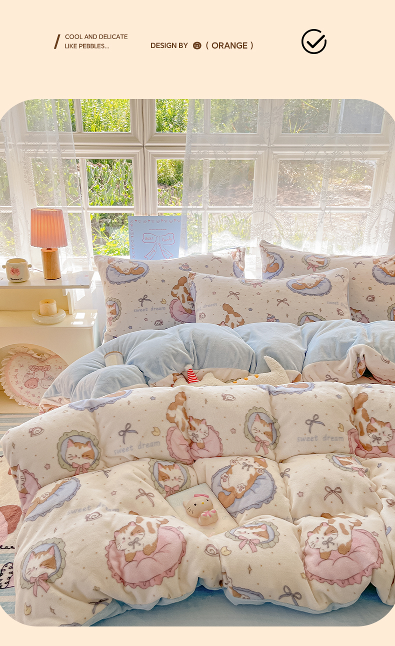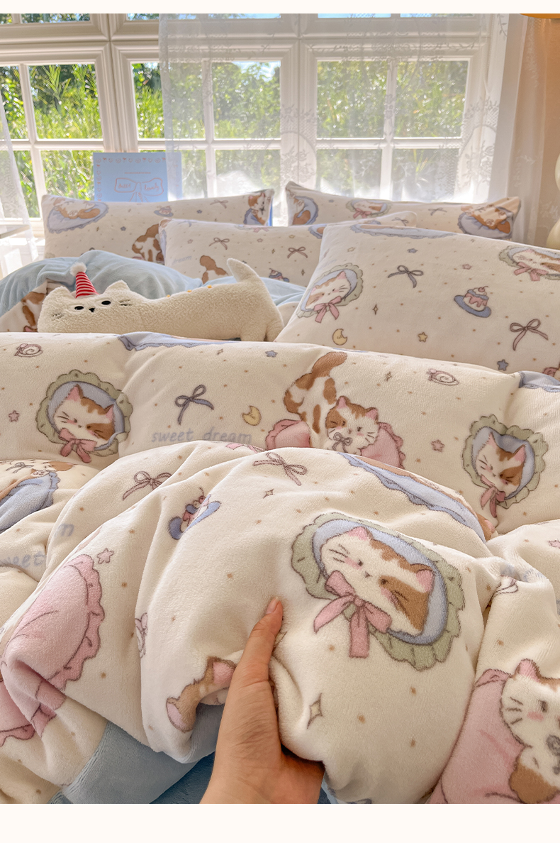 如一 2025新款高克重卡通印花牛奶绒四件套第二批 小花喵