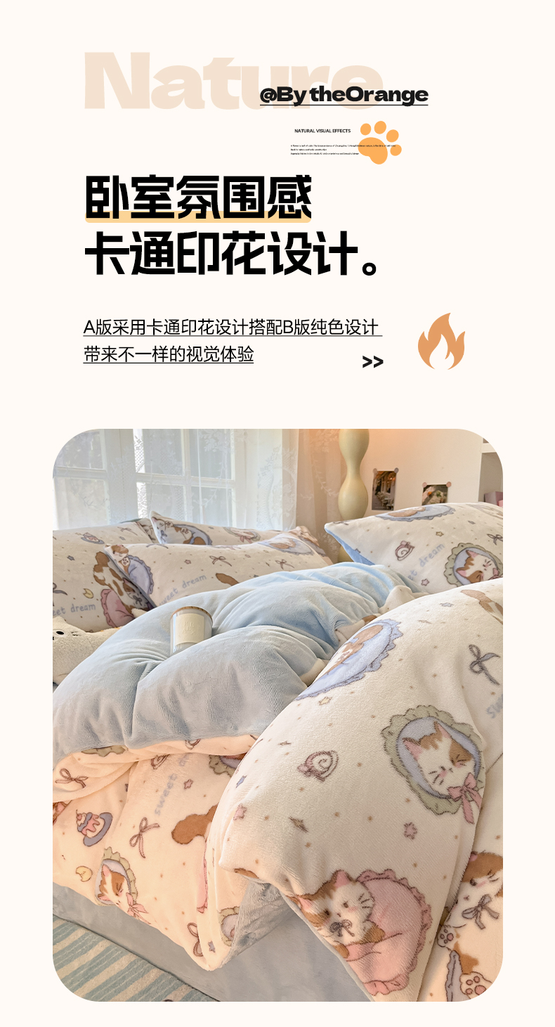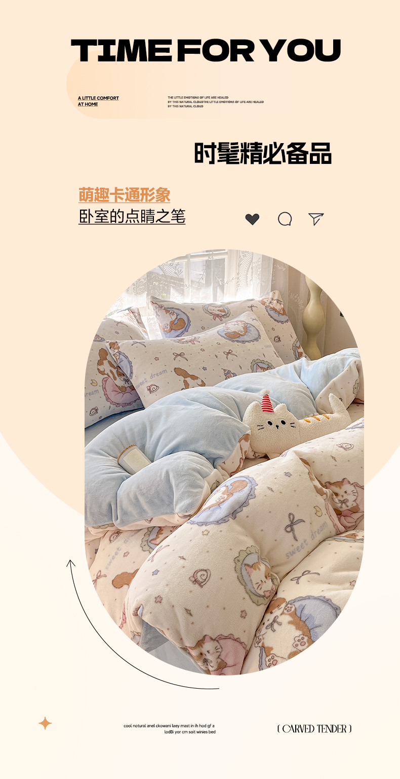 商品名称:如一 2025新款高克重卡通印花牛奶绒四件套第二批 小花喵
