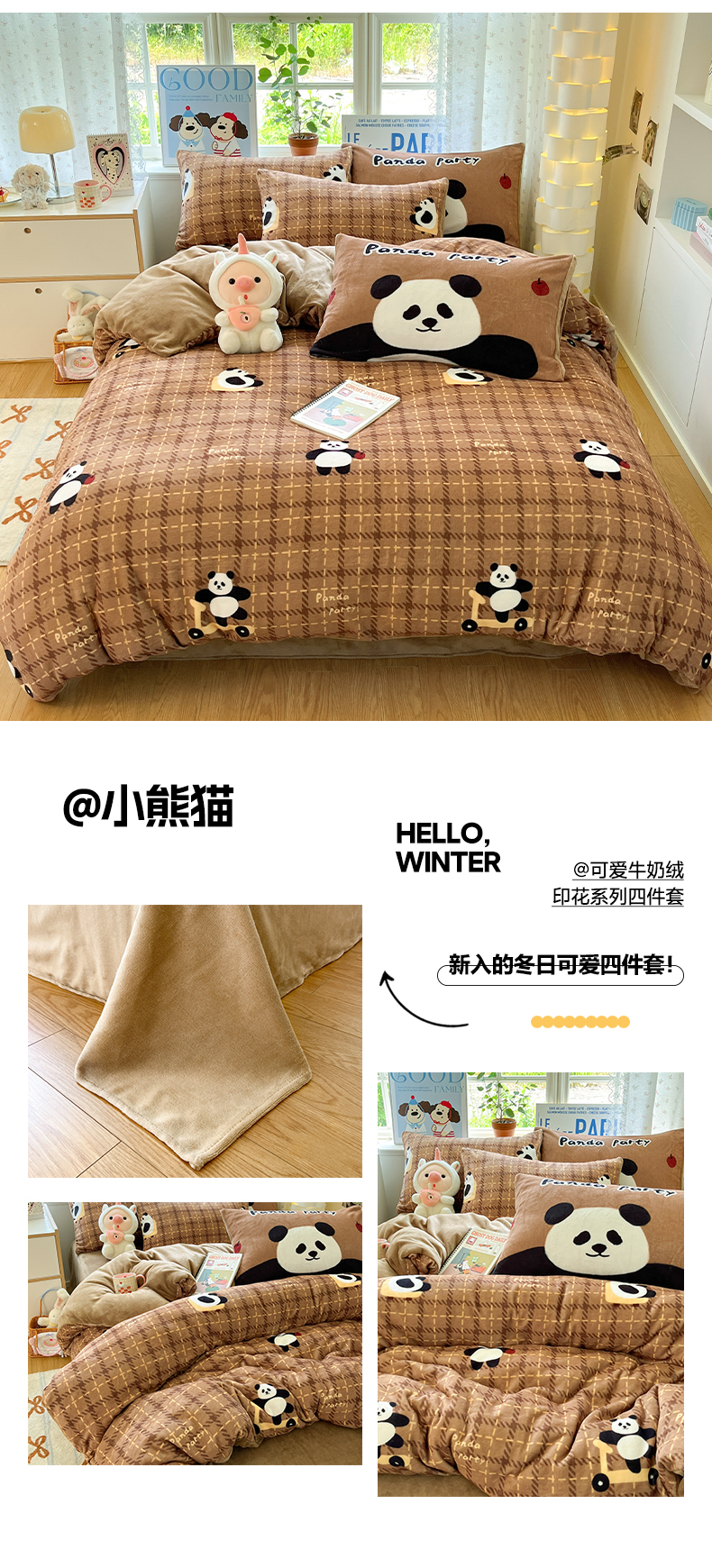 (总)如一 2025新款高克重大版数码印花牛奶绒四件套,毛毛狗,猫咪酱,俏皮狗,色彩猫,小熊仔,熊猫咖,游乐园,粉伙伴,拉兔咖,萌宠黄,萌宠绿,萌派对,围巾狗,线条狗,小粉喵,小花喵,小伙伴