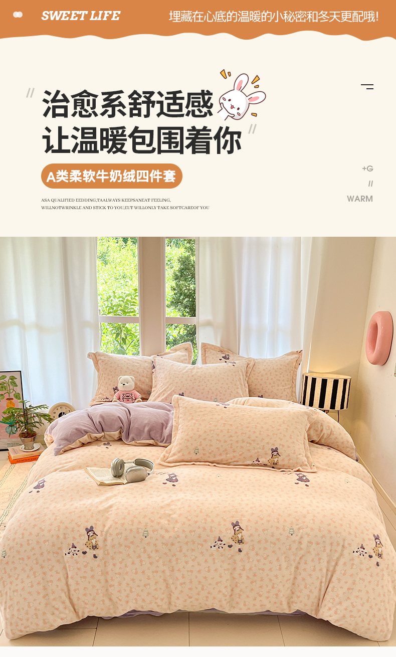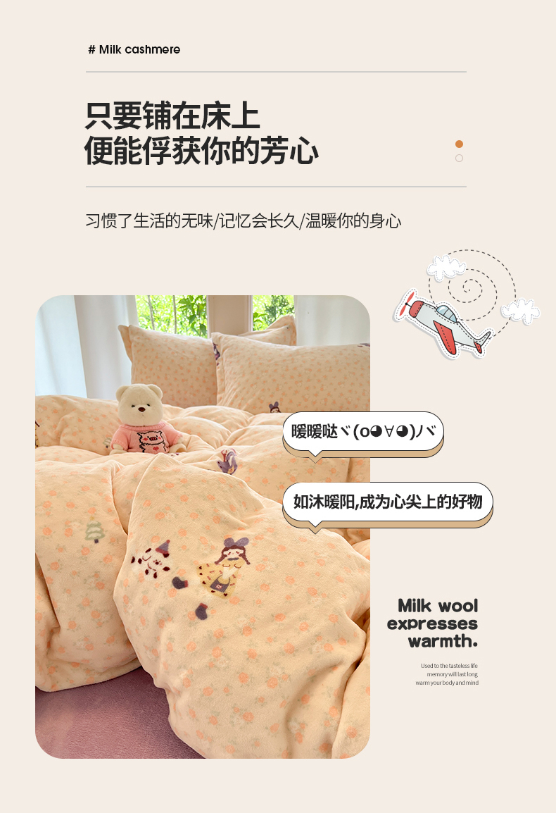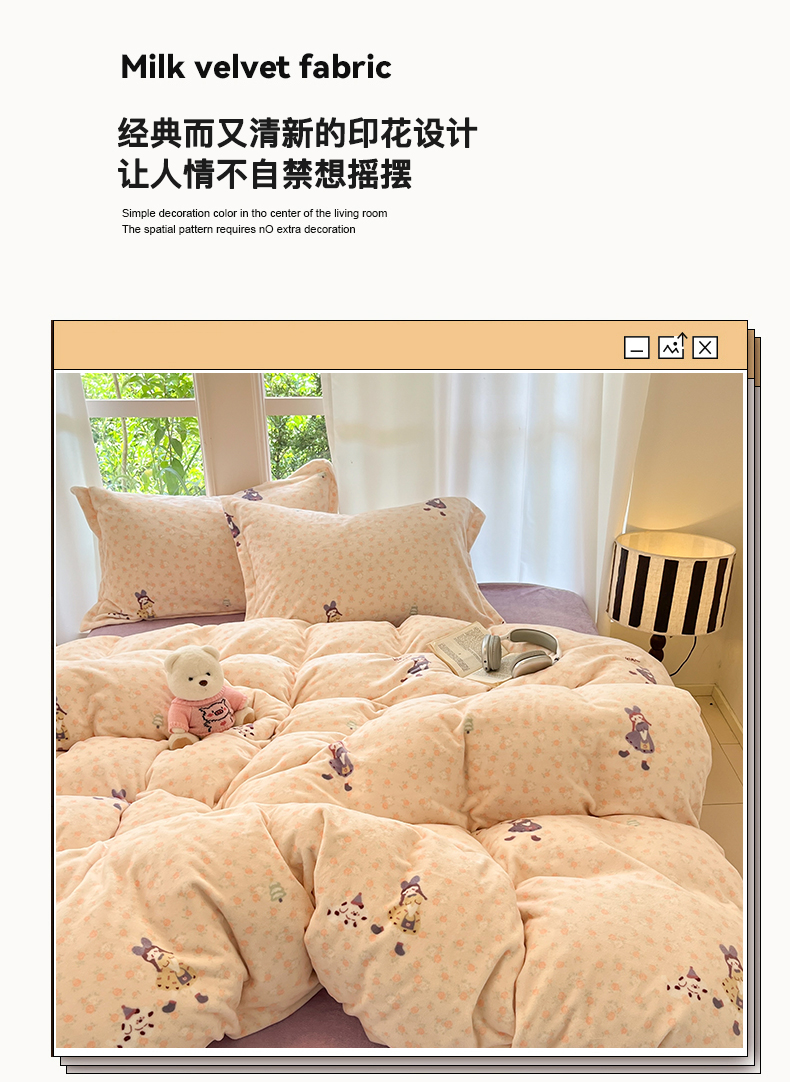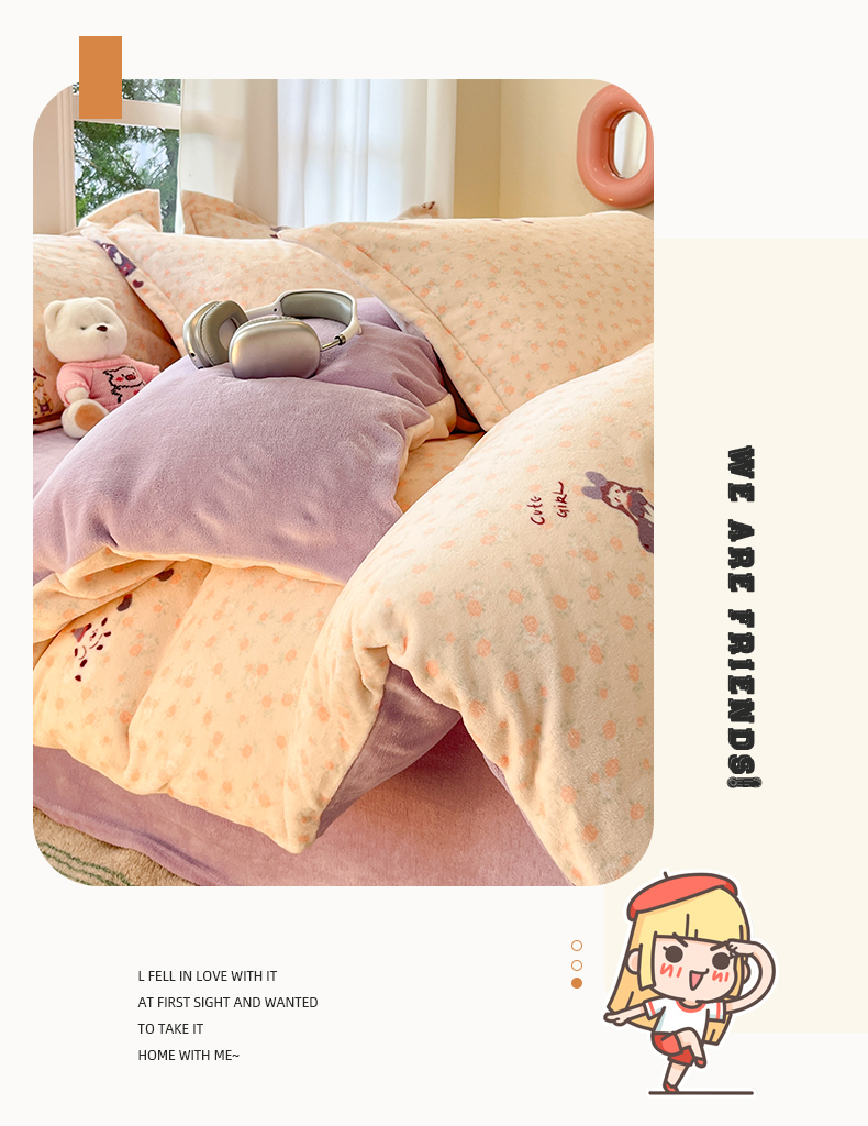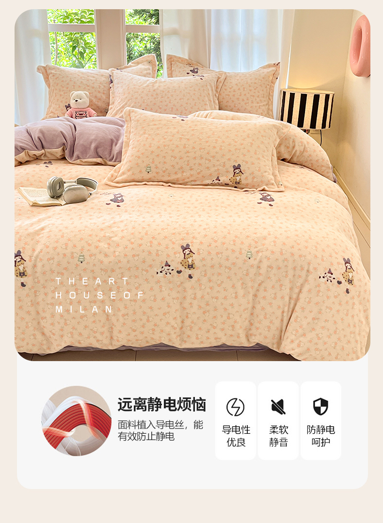 当前位置: 91家纺网 > 商品网购 > 床品套件 > 四件套 > 牛奶绒四件套 > 寐居家纺 2025新款印花牛奶绒四件套 春日女孩