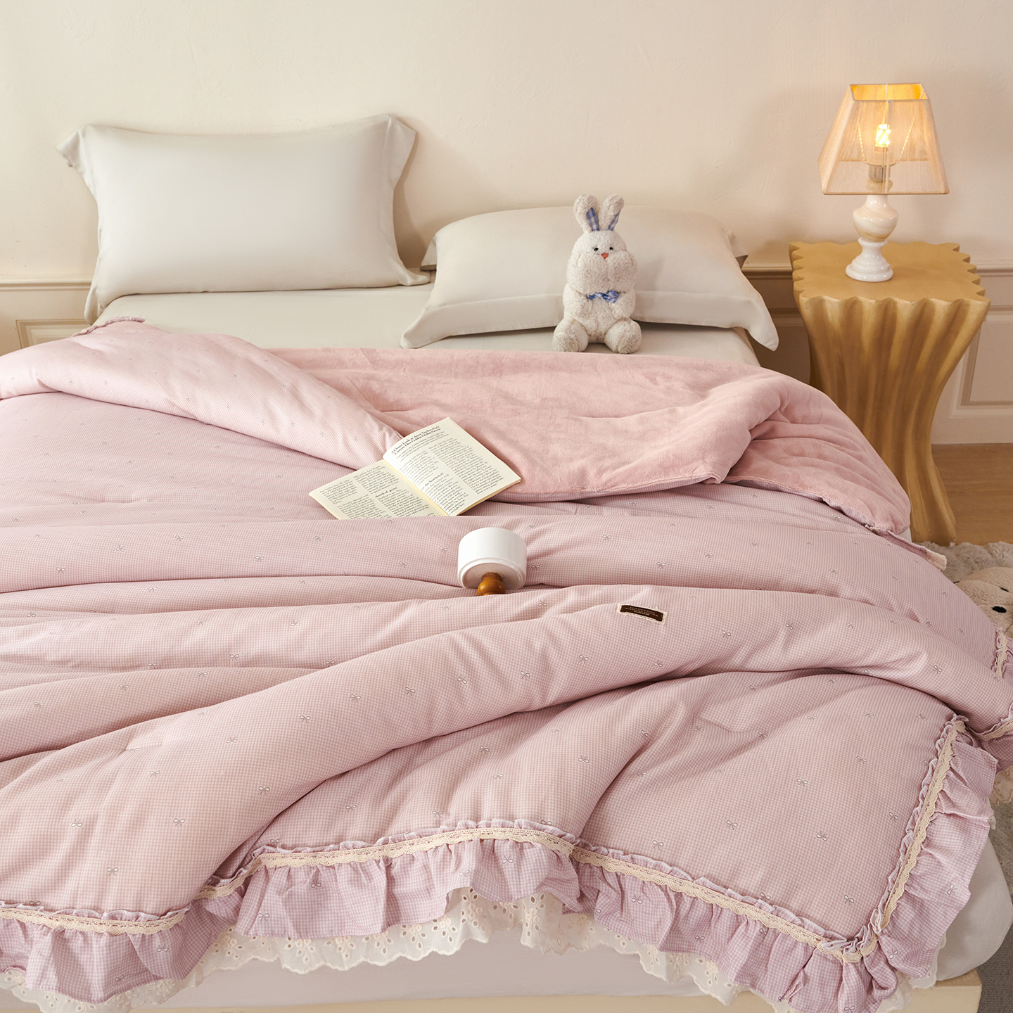 • 91家纺网 家纺一手货源 找家纺 (总)优希家纺 2025新款米娅千金多功能春秋被四件套,米白色,粉色,卡其,绿色