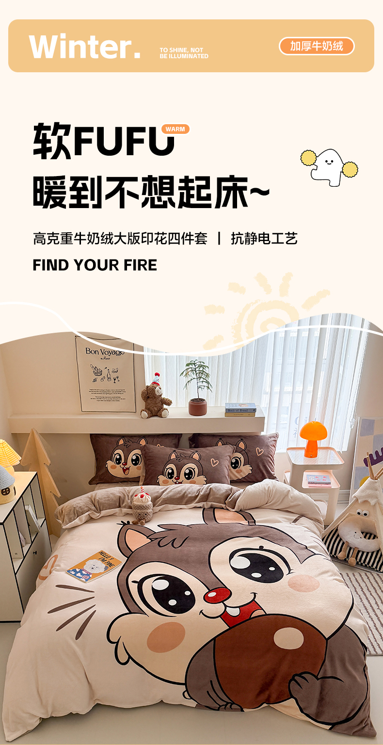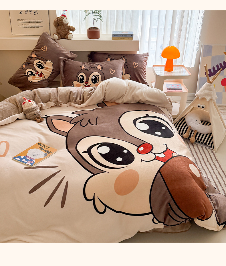 当前位置: 91家纺网 > 商品网购 > 床品套件 > 四件套 > 其它四件套 > 慕晨 2025新款卡通可爱大版印花牛奶绒加厚保暖小清新四件套直播 可爱松鼠