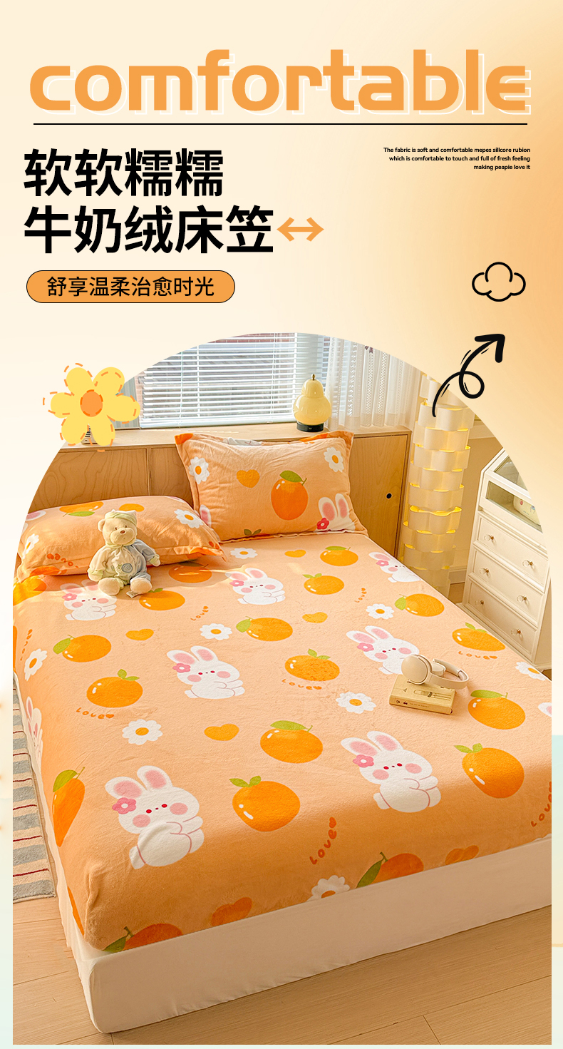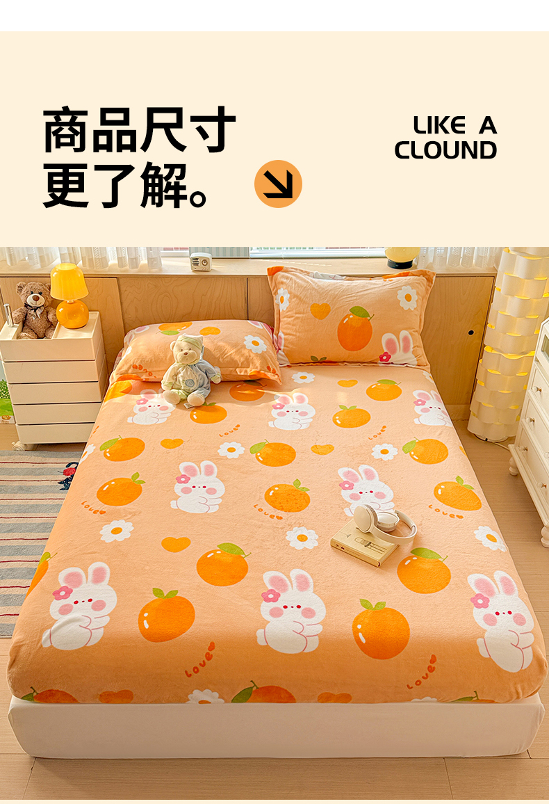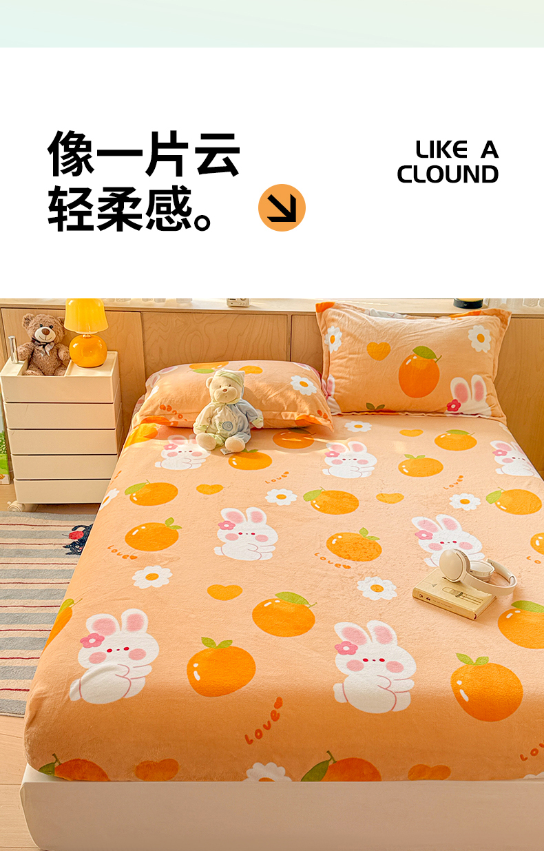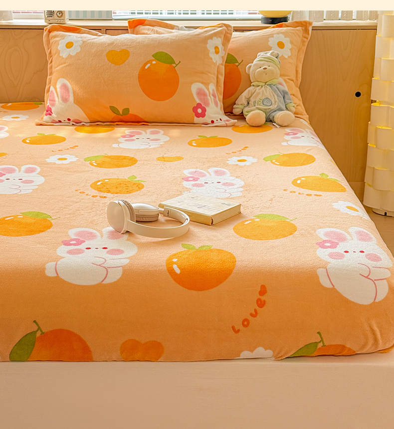 名兮家居 2025新款高克重印花牛奶绒单床笠床笠单件 兔兔派对